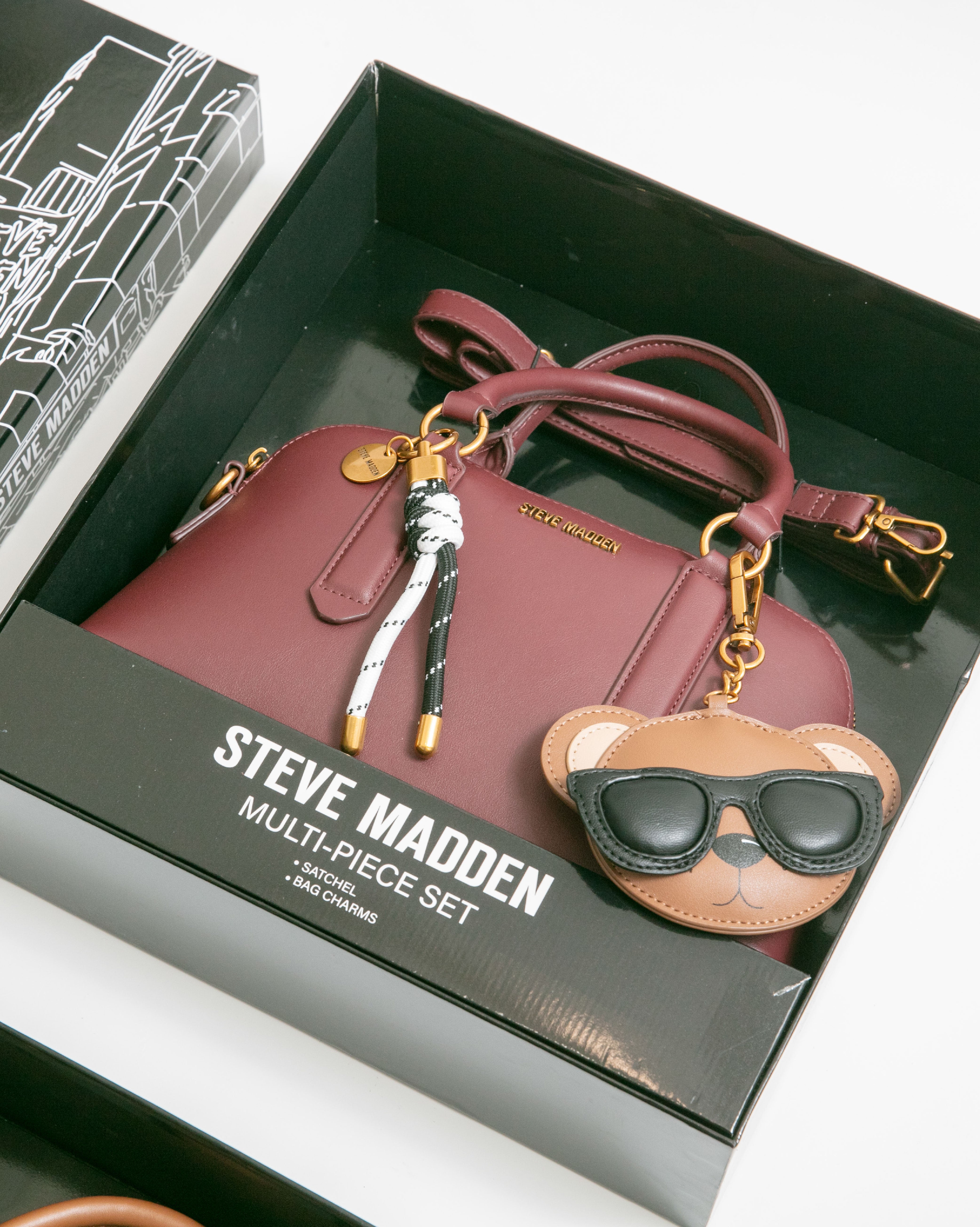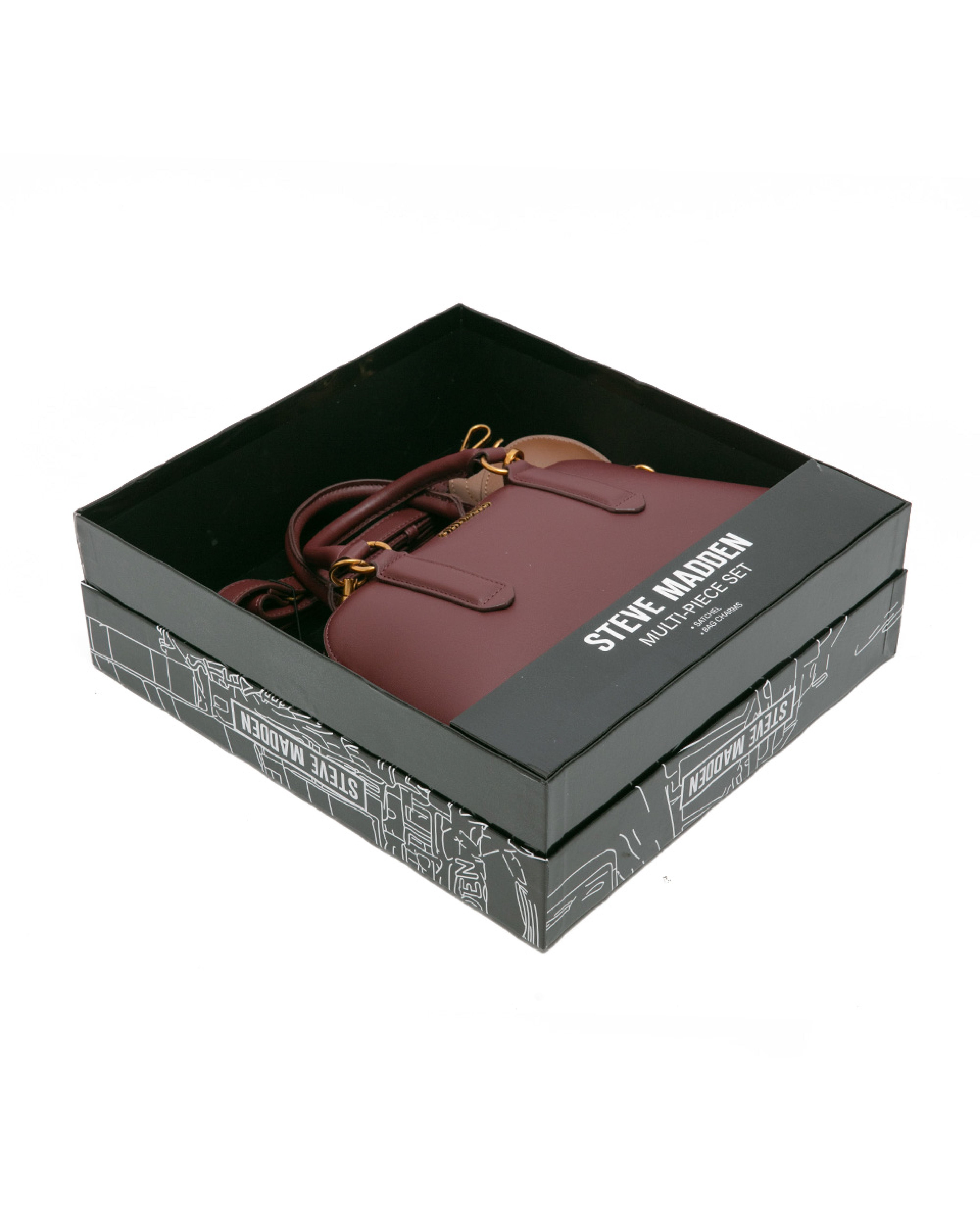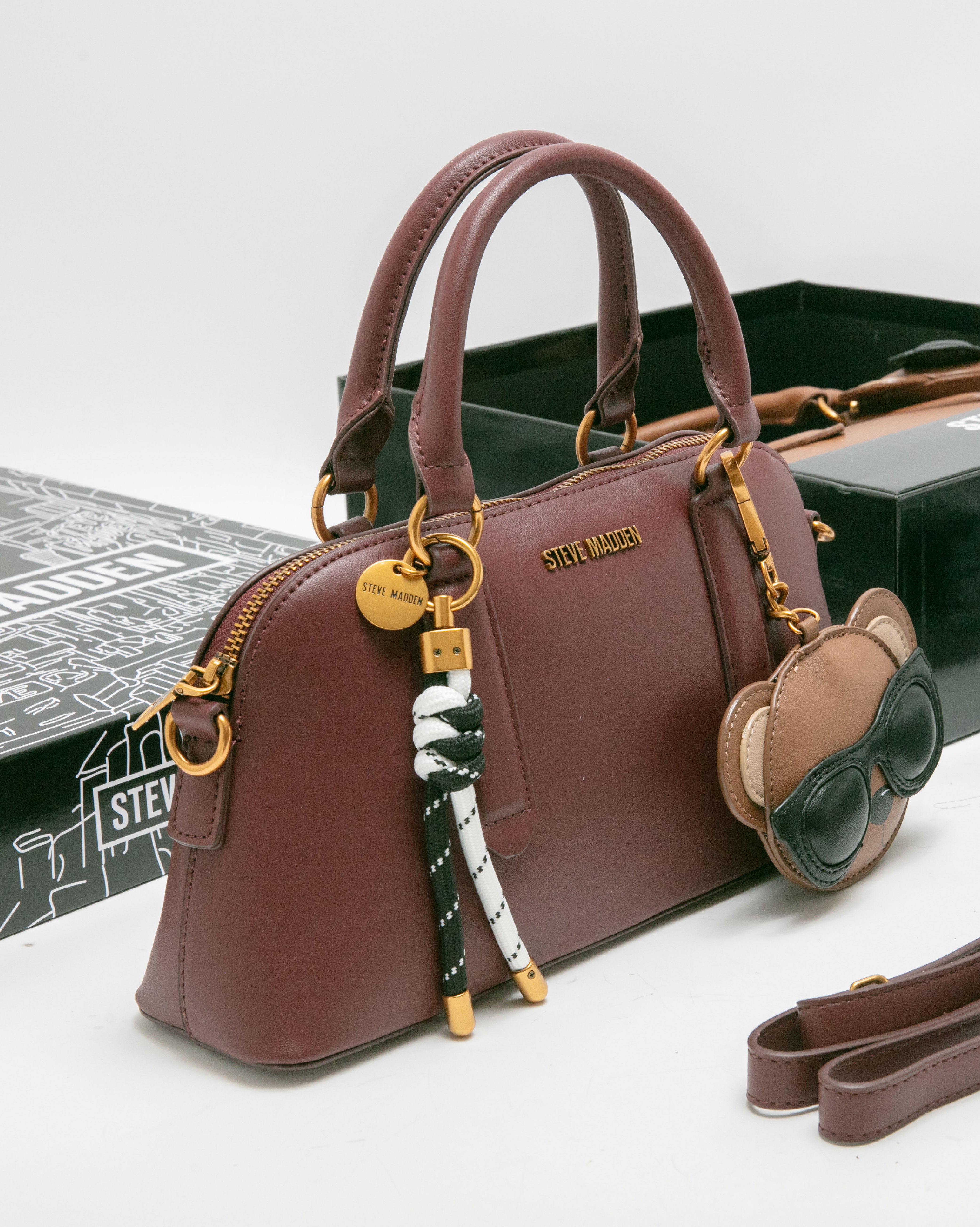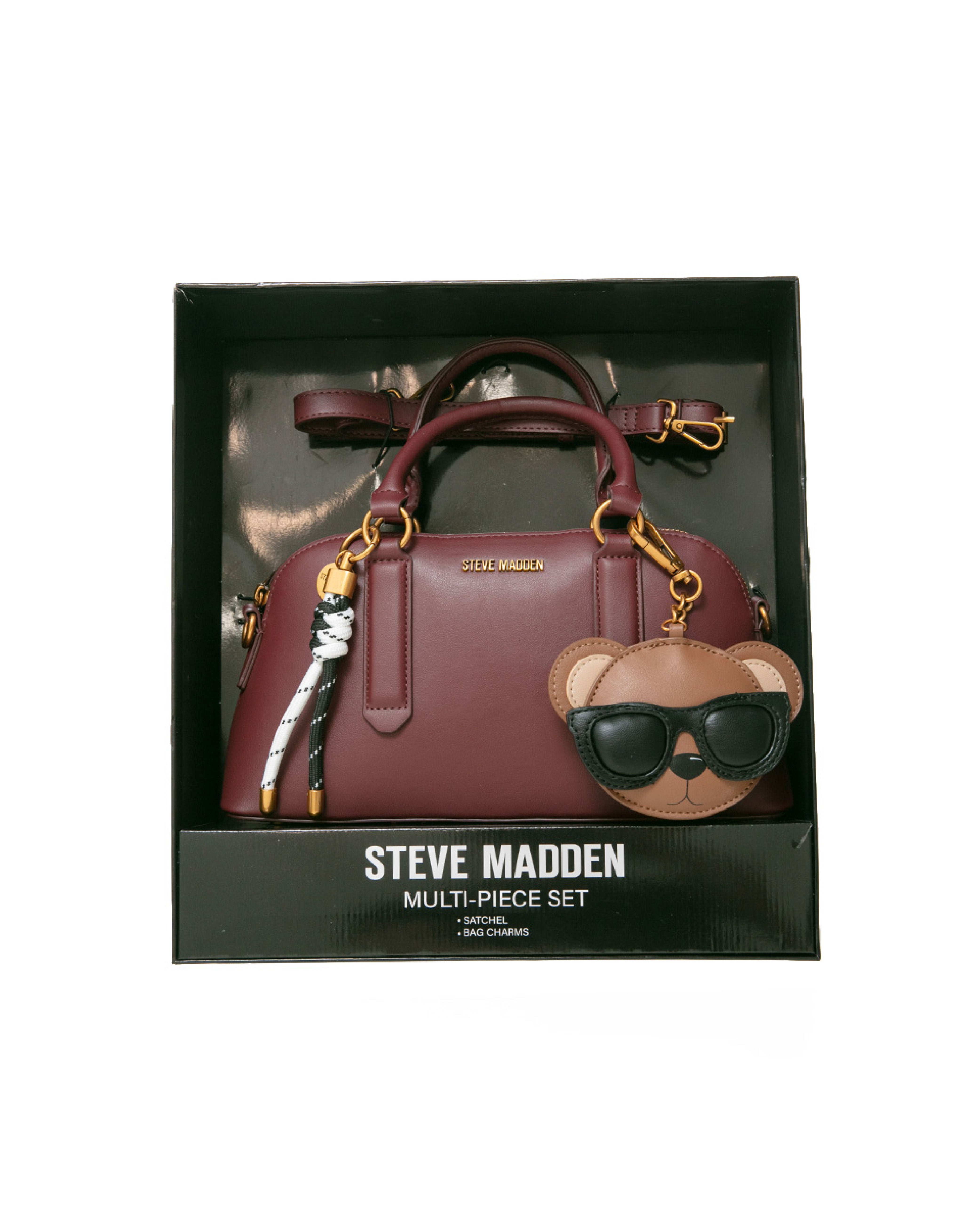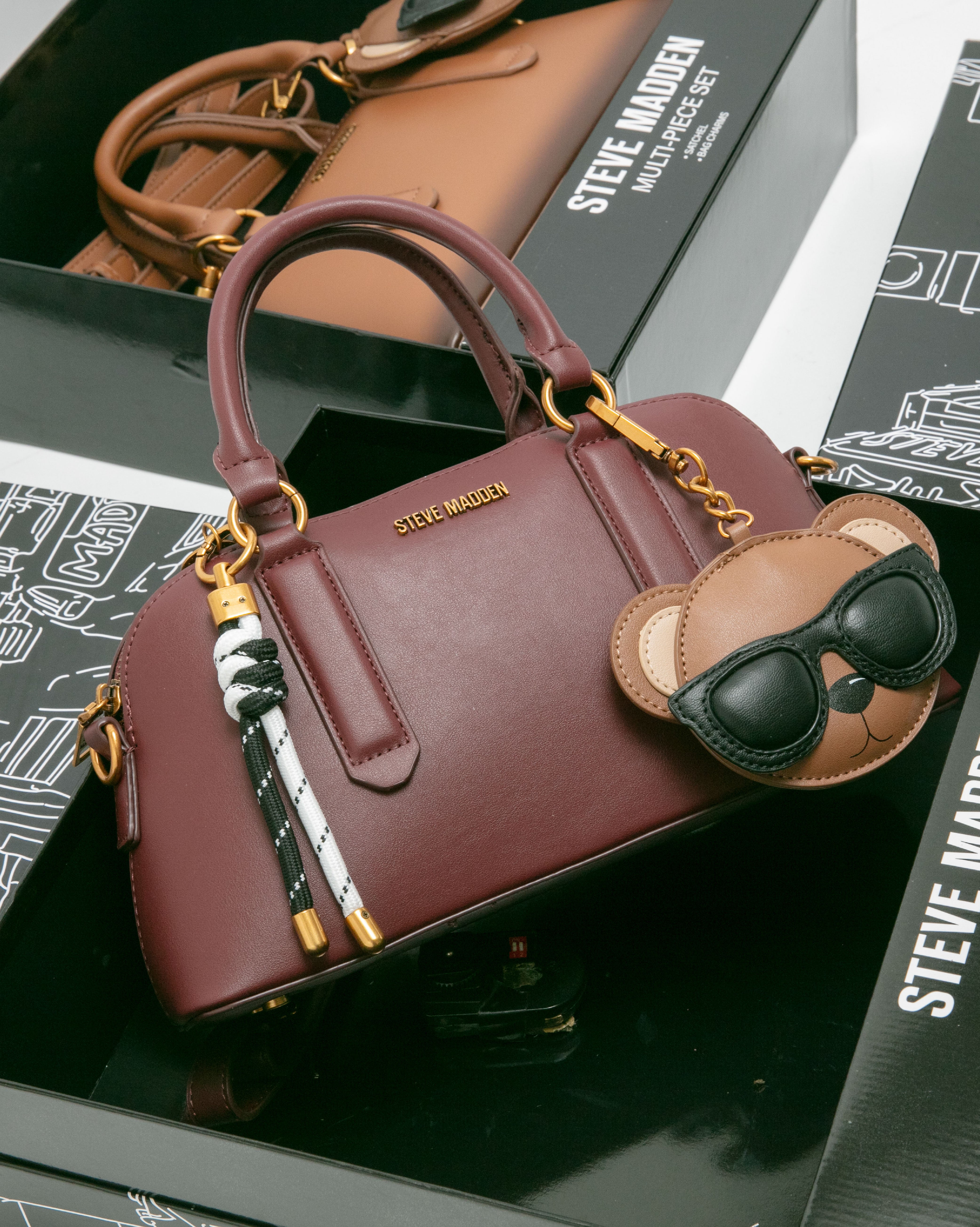 • 潮流小熊雙吊飾/素面兩用包禮盒-酒紅色