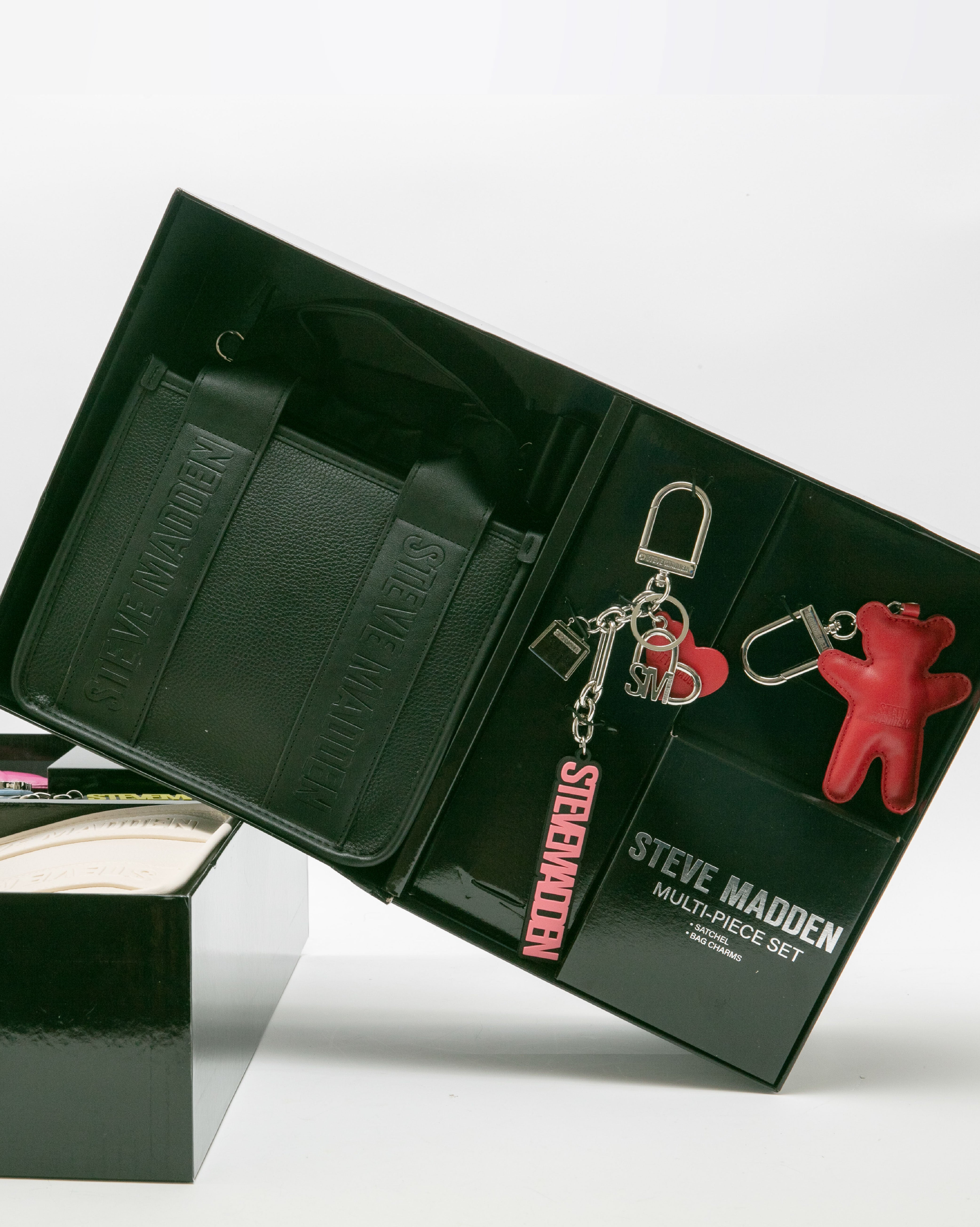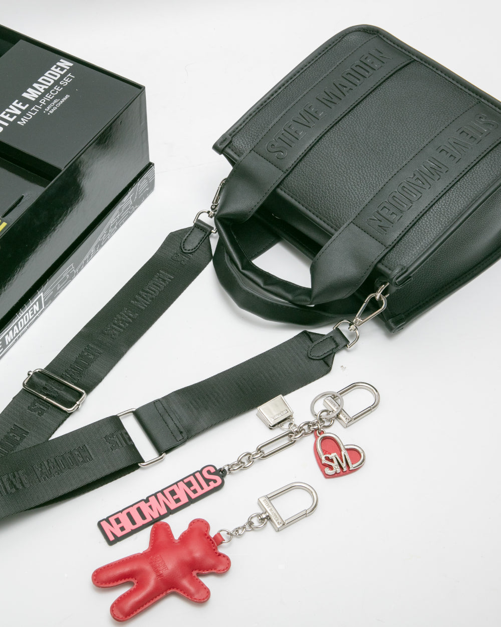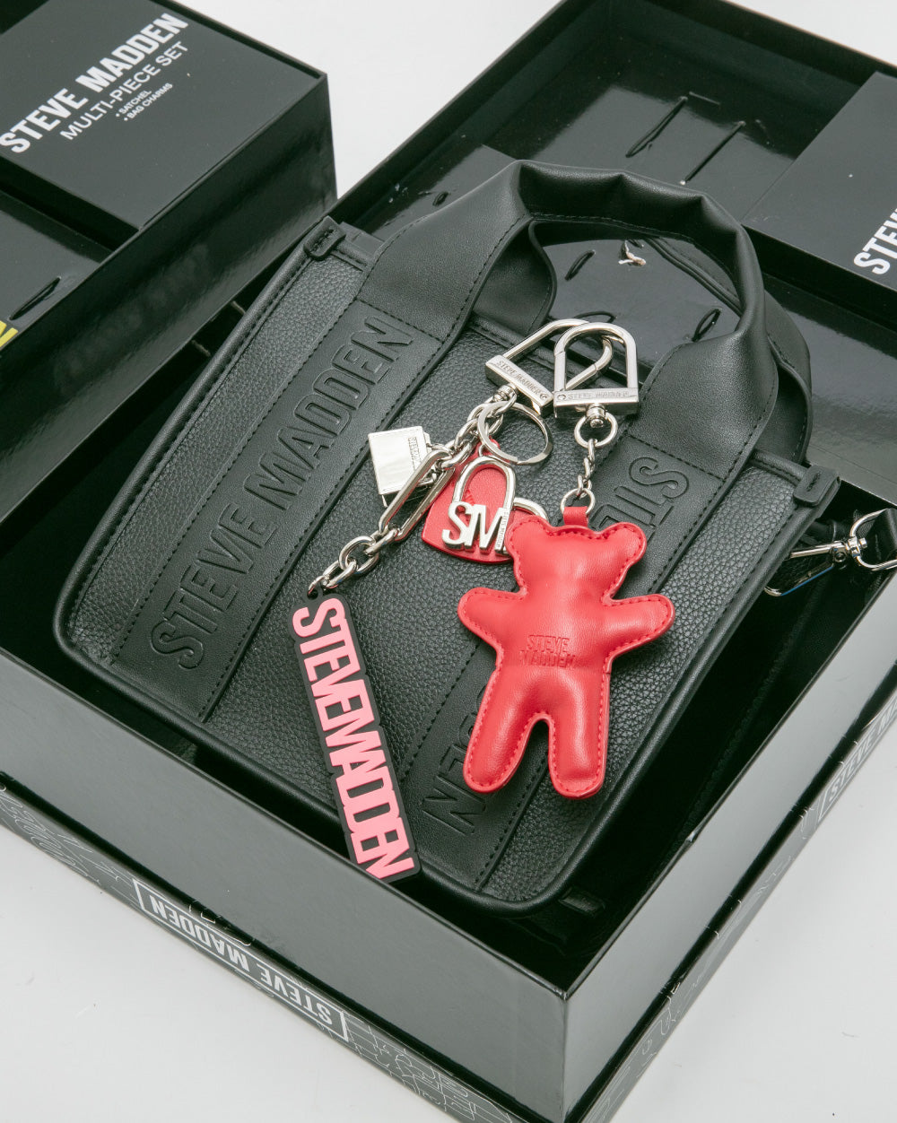 • 素面LOGO寬背帶雙吊飾禮盒-黑色