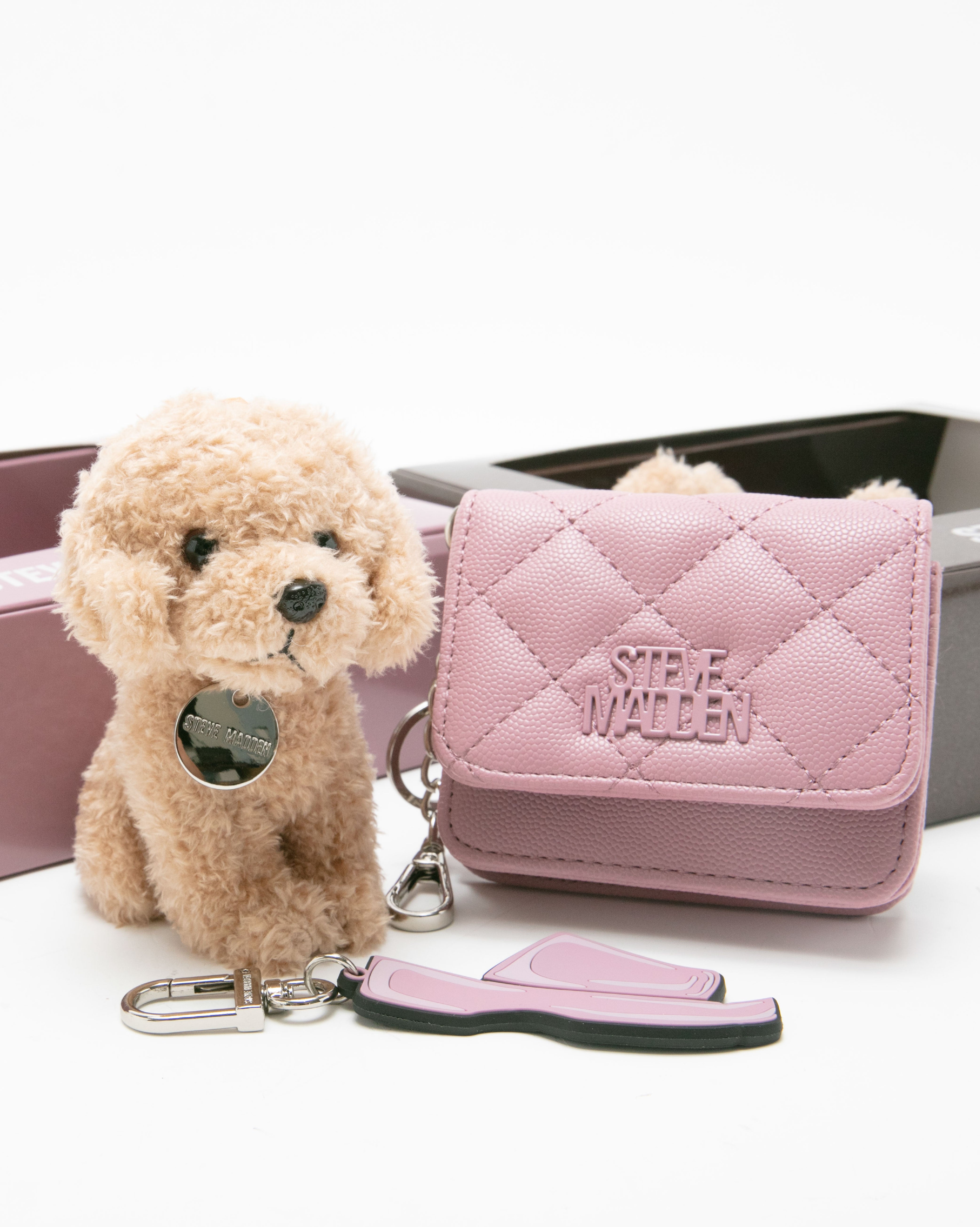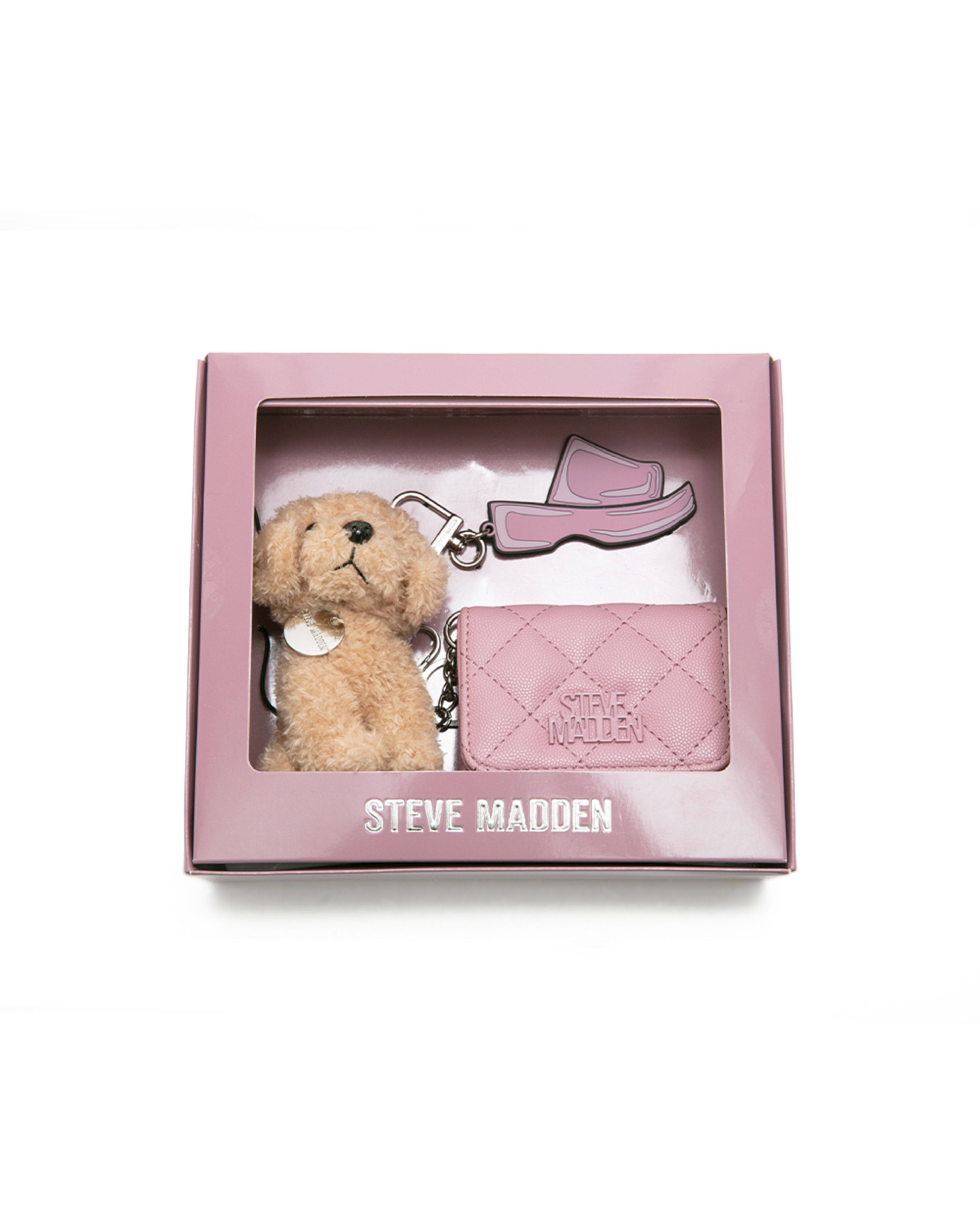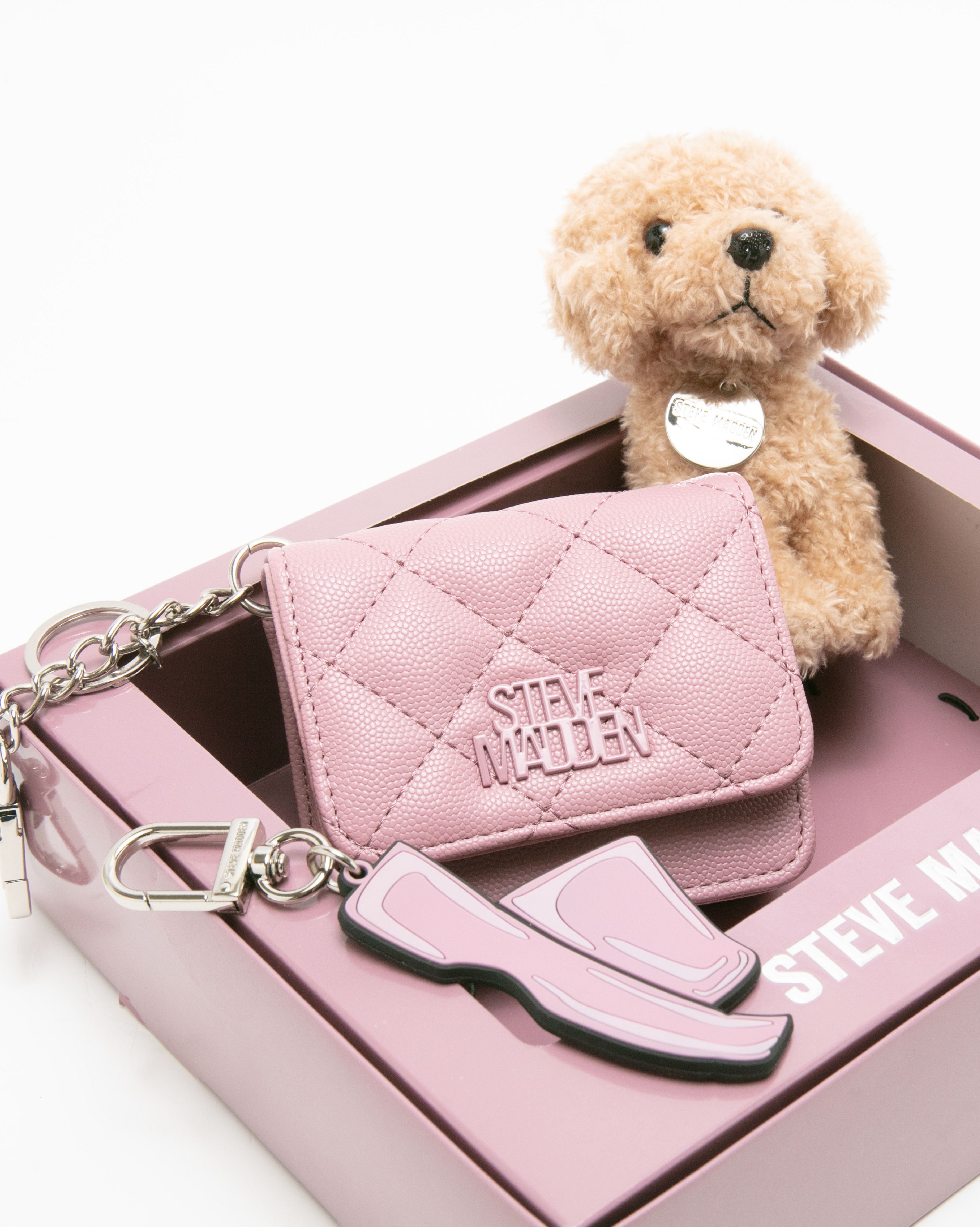 • 【線上獨家禮盒】菱格紋零錢包/吊飾三件禮盒組-粉紅色