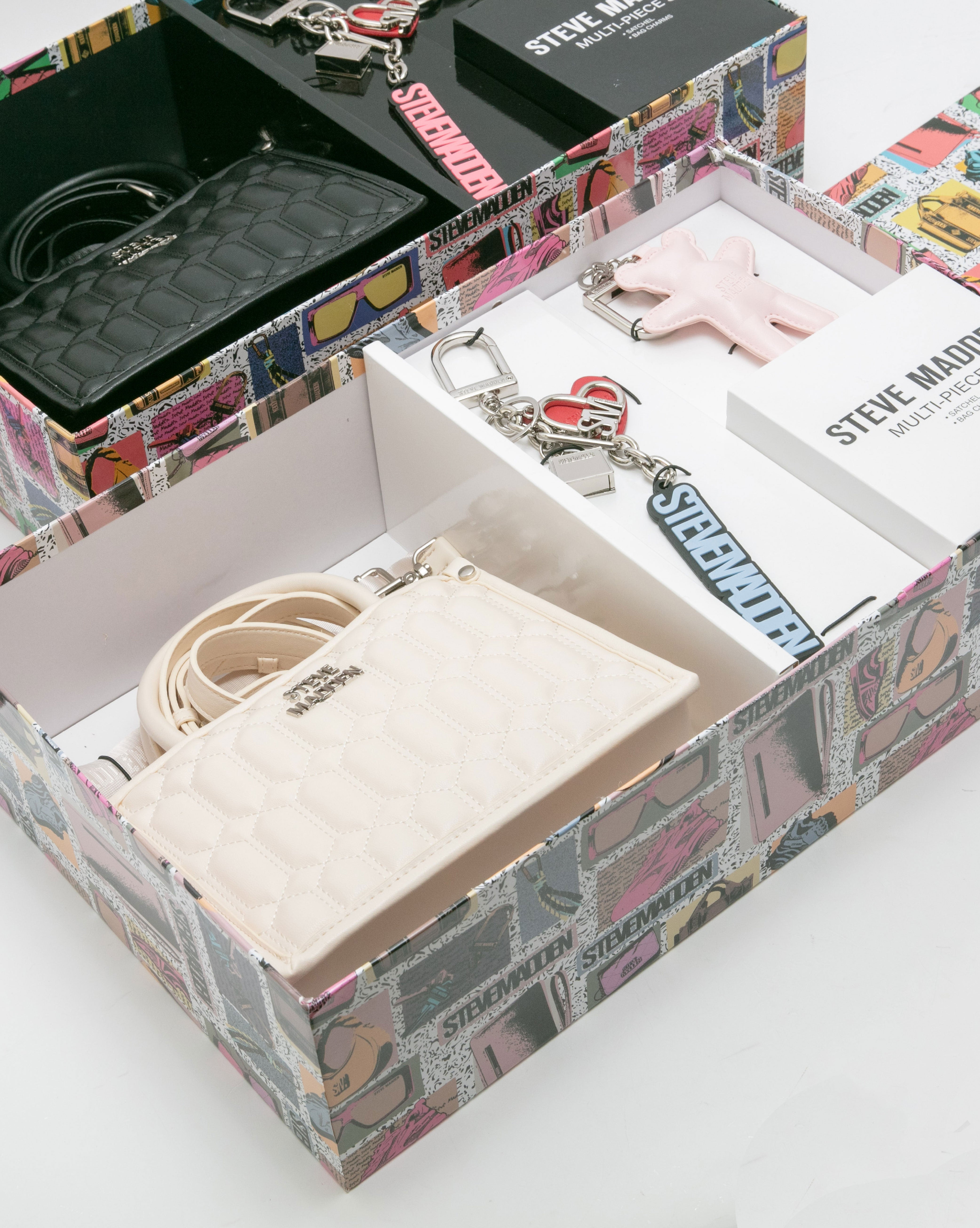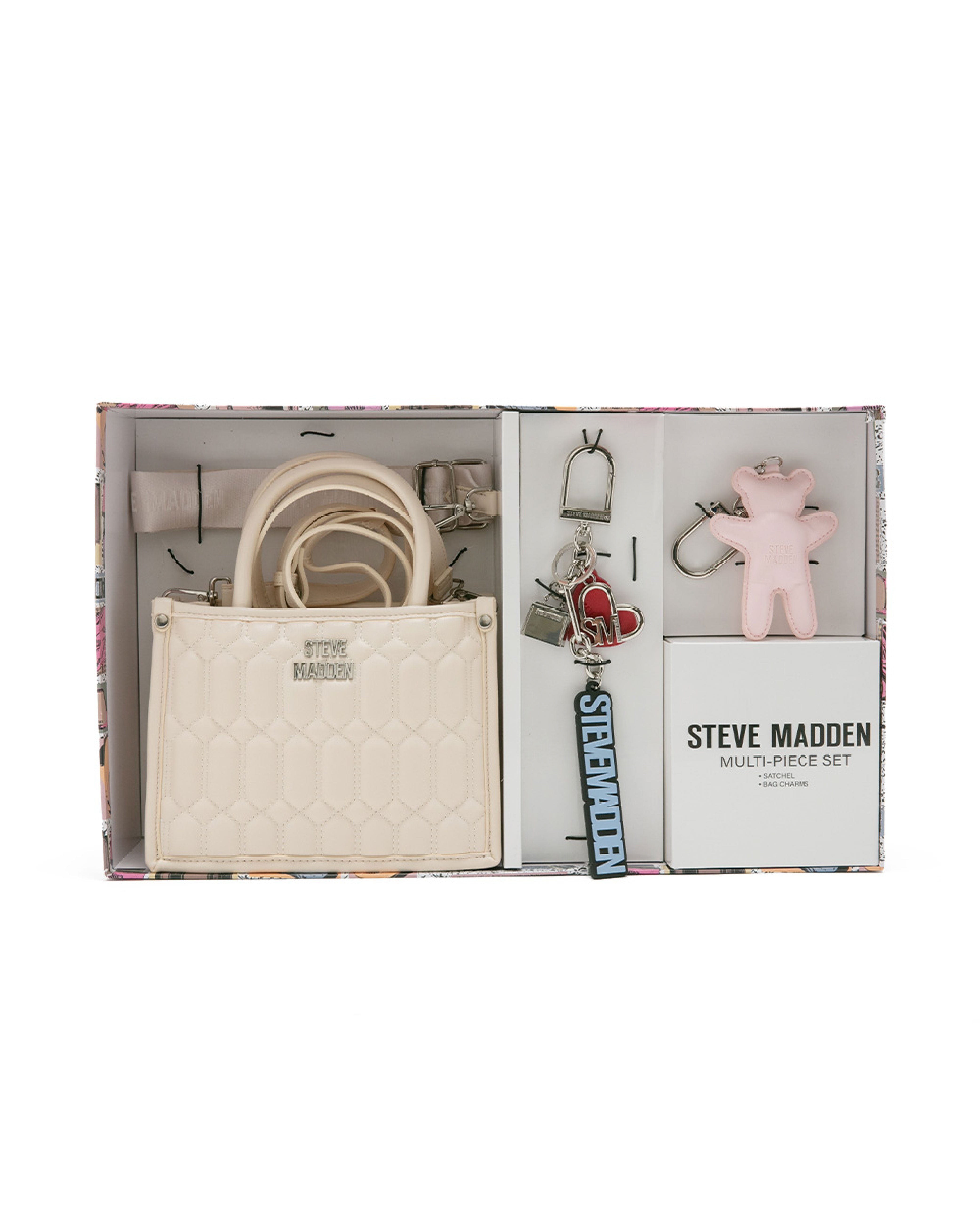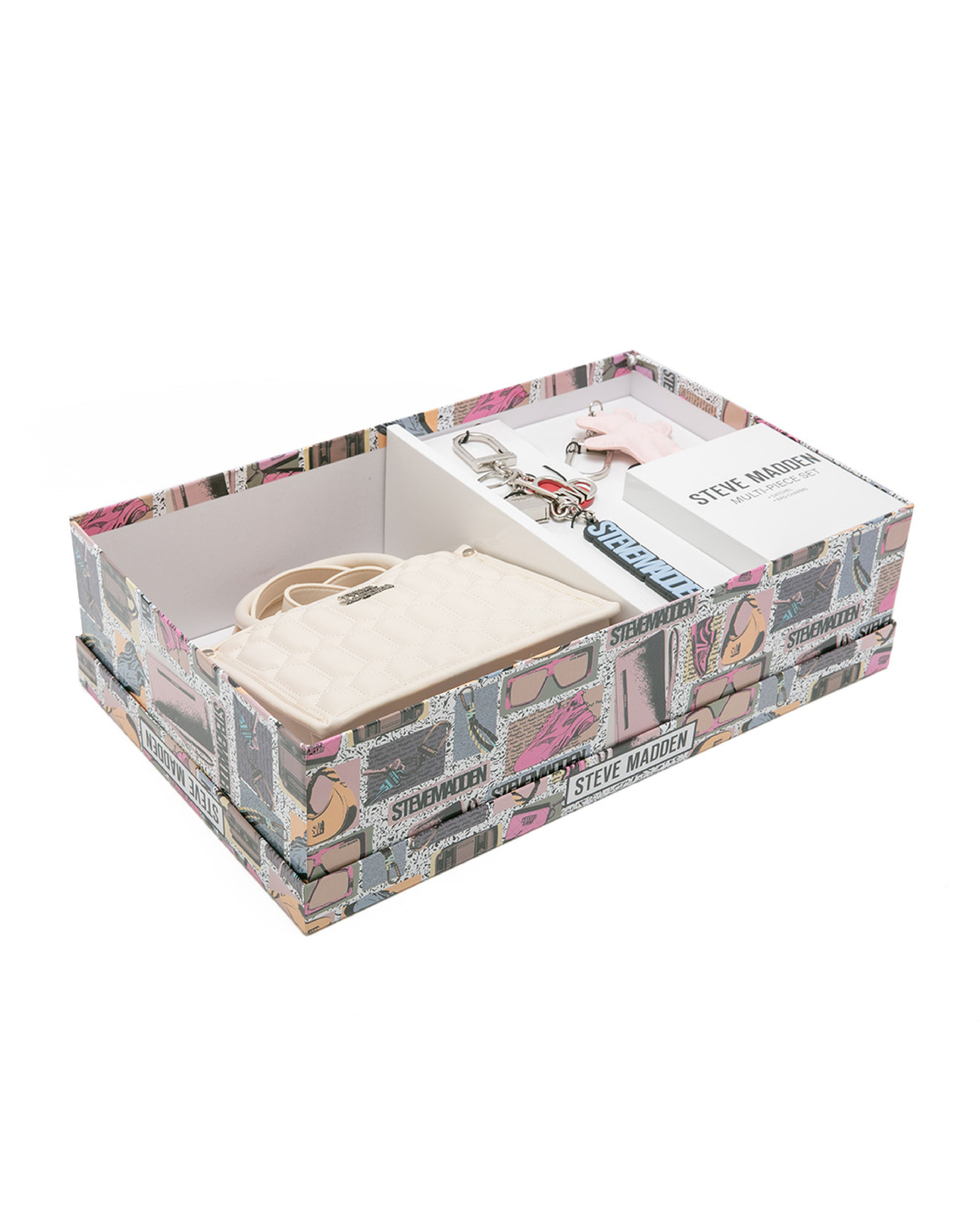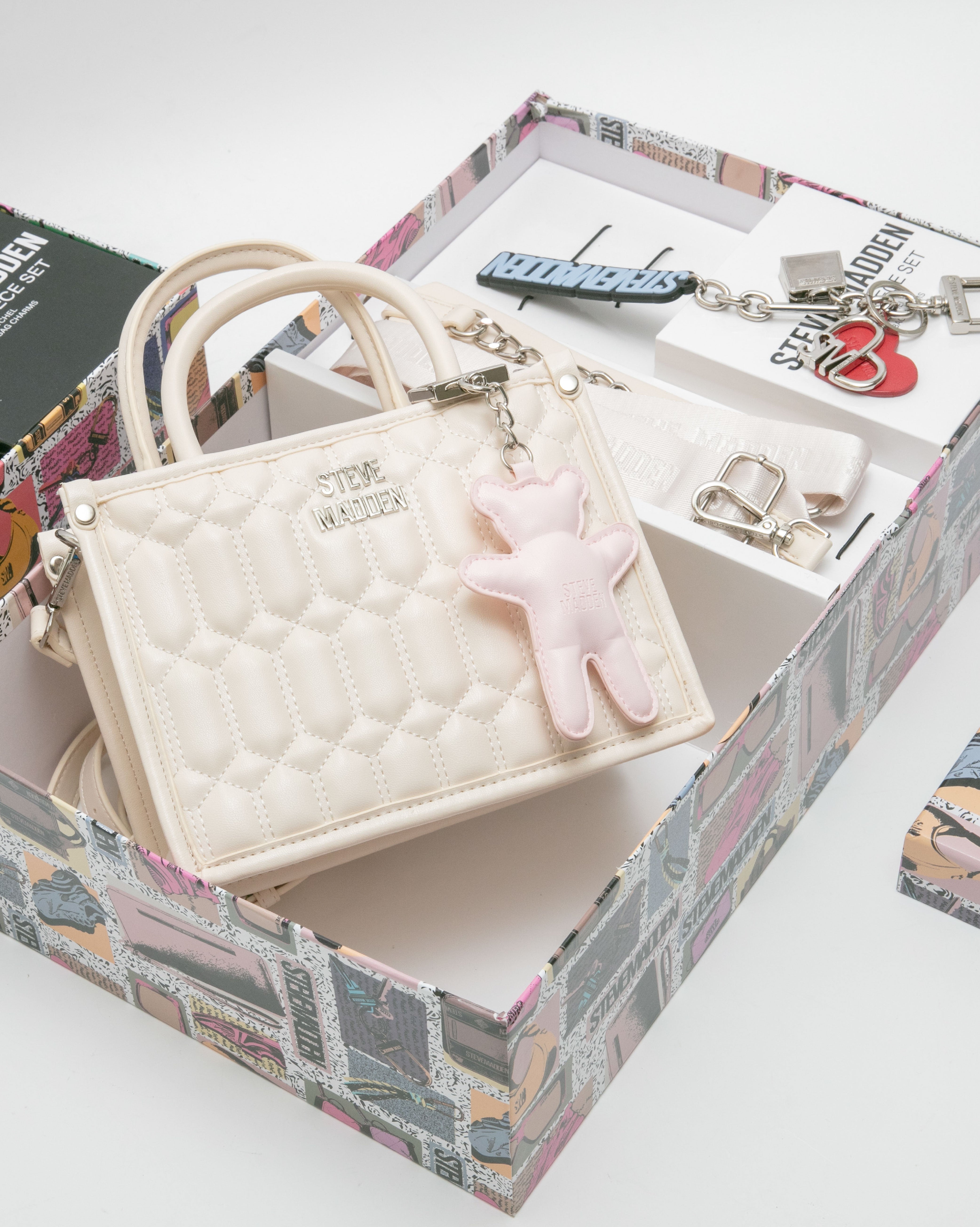 • 雙吊飾/格紋方形兩用包禮盒-米色