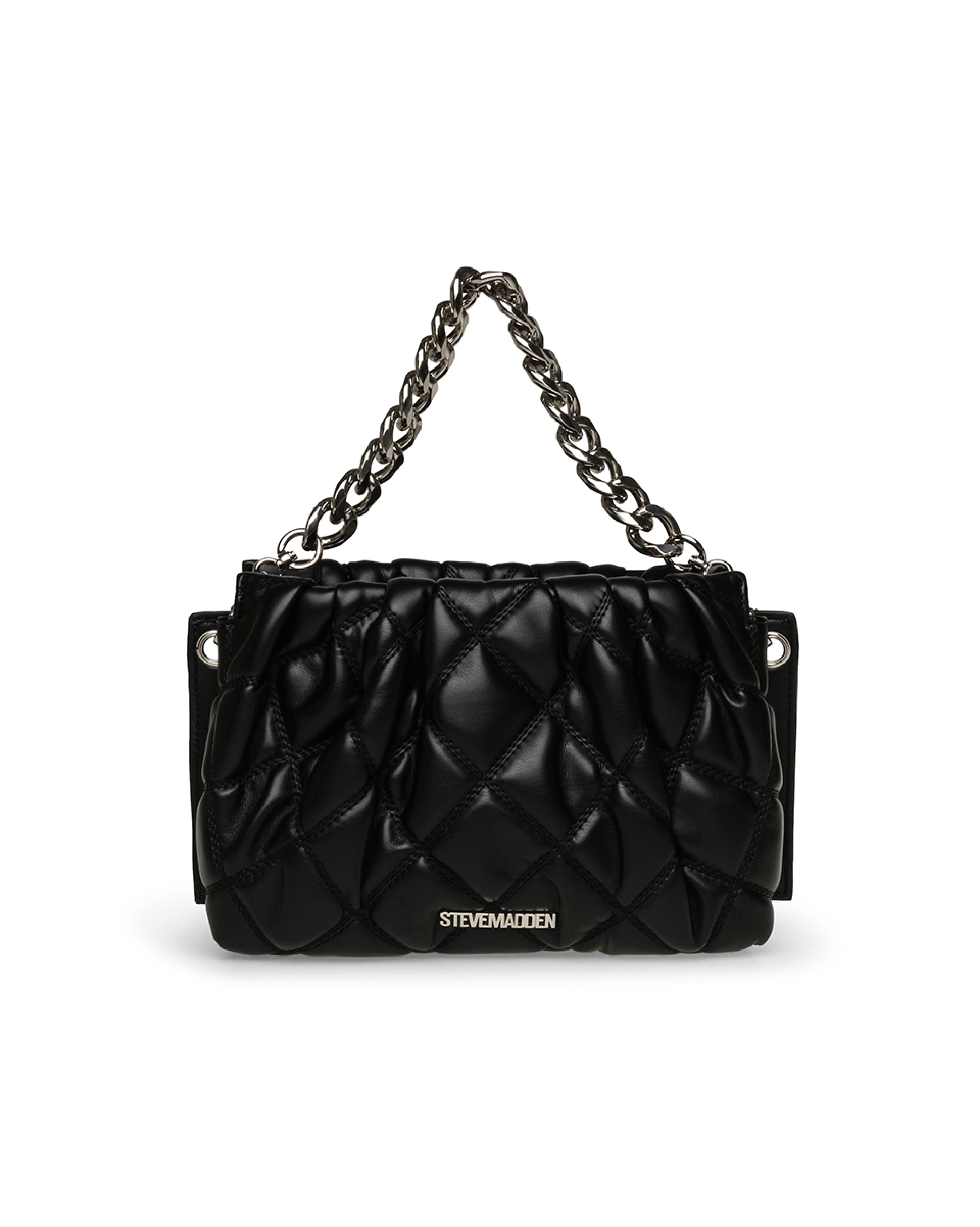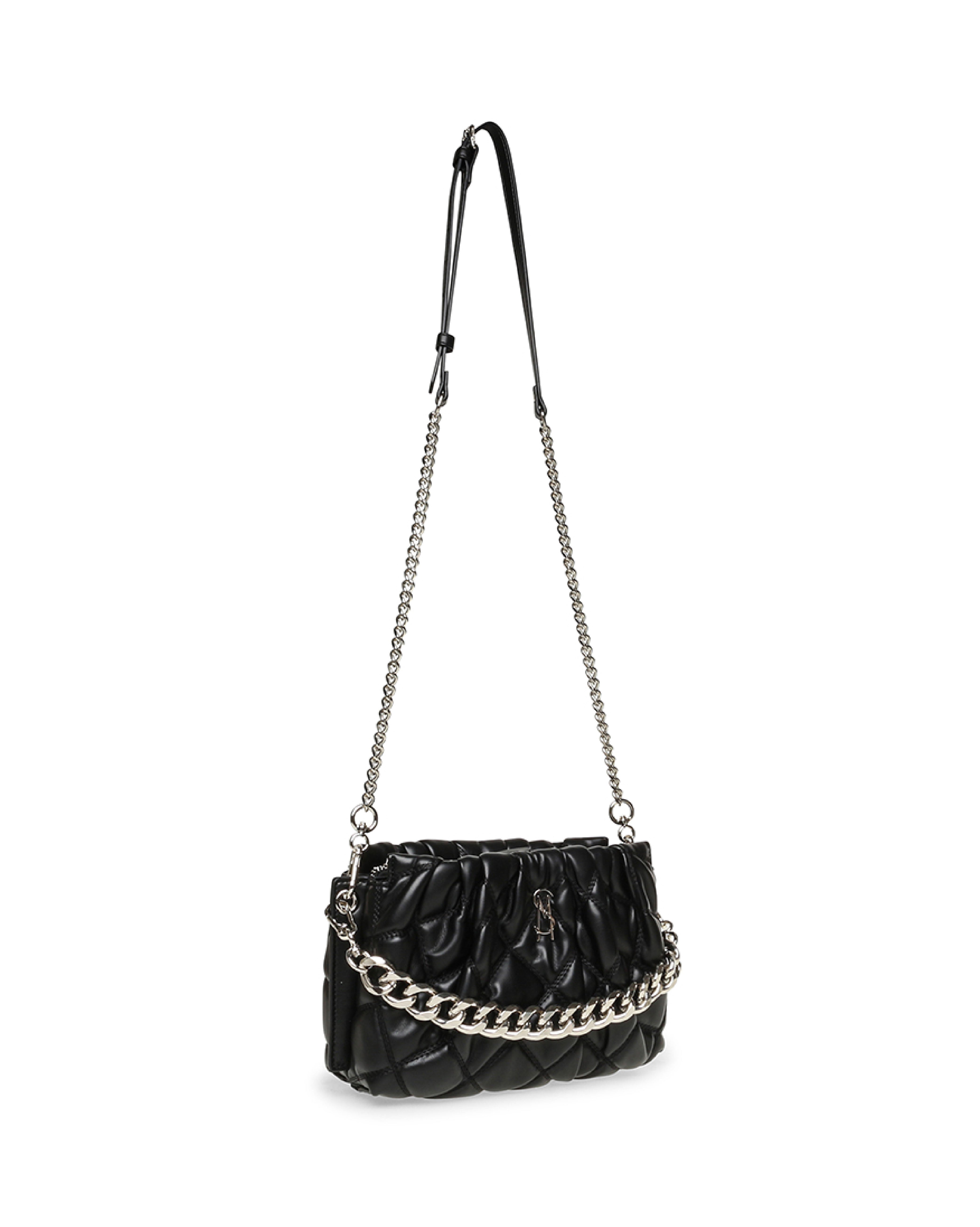 BTANSIES菱格紋抓皺鍊帶斜背包-黑色