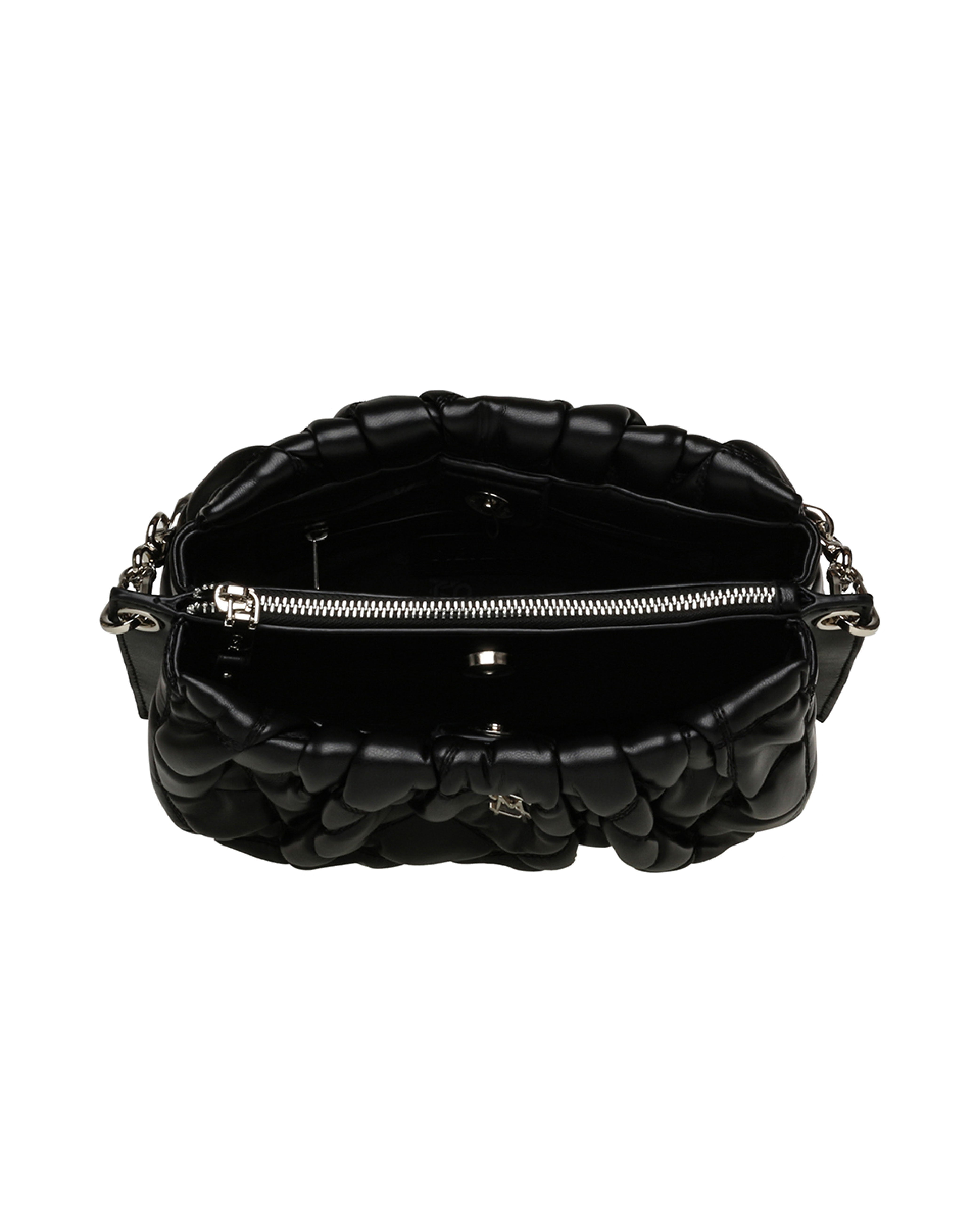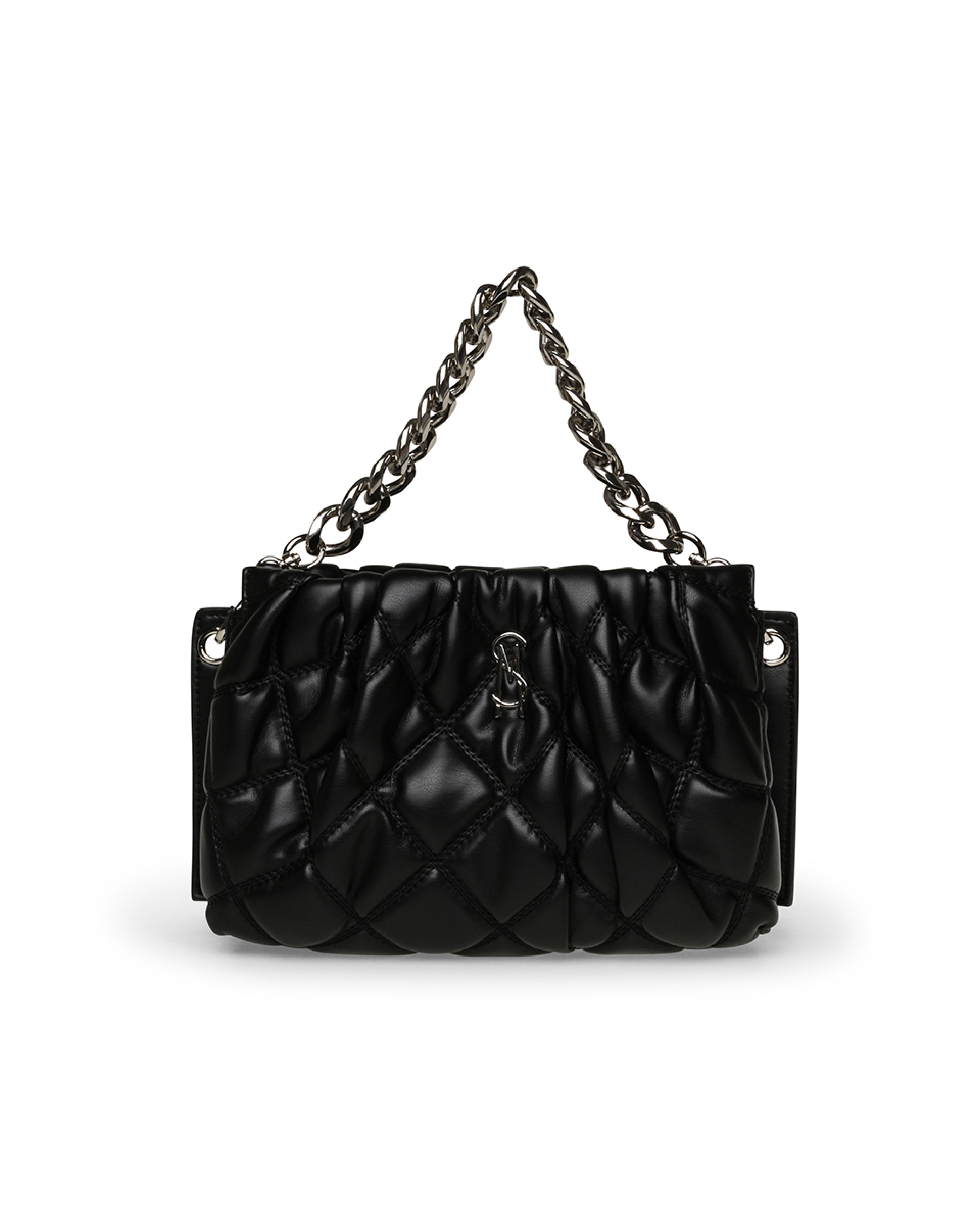 Btansies 菱格紋抓皺鍊帶斜背包-黑色