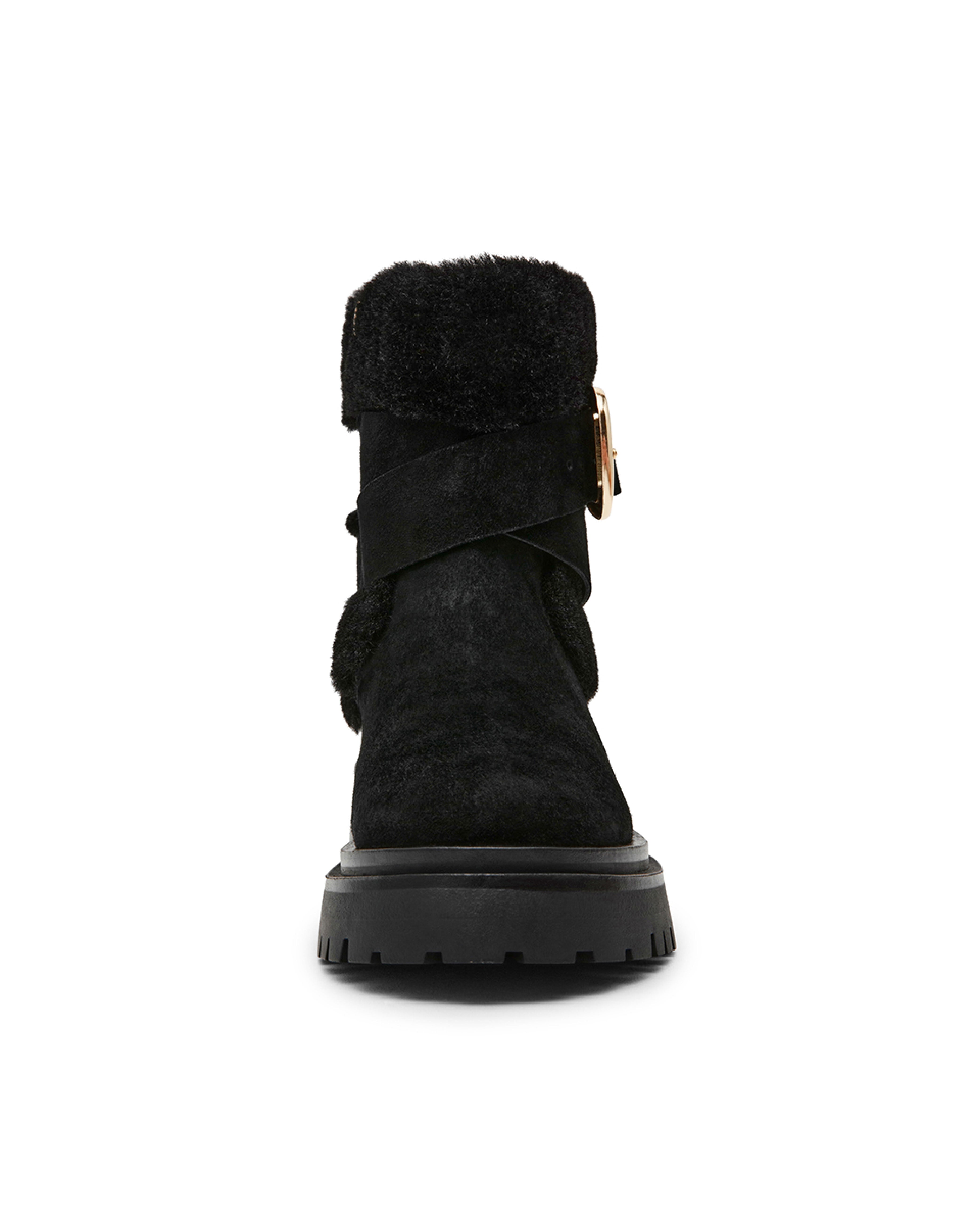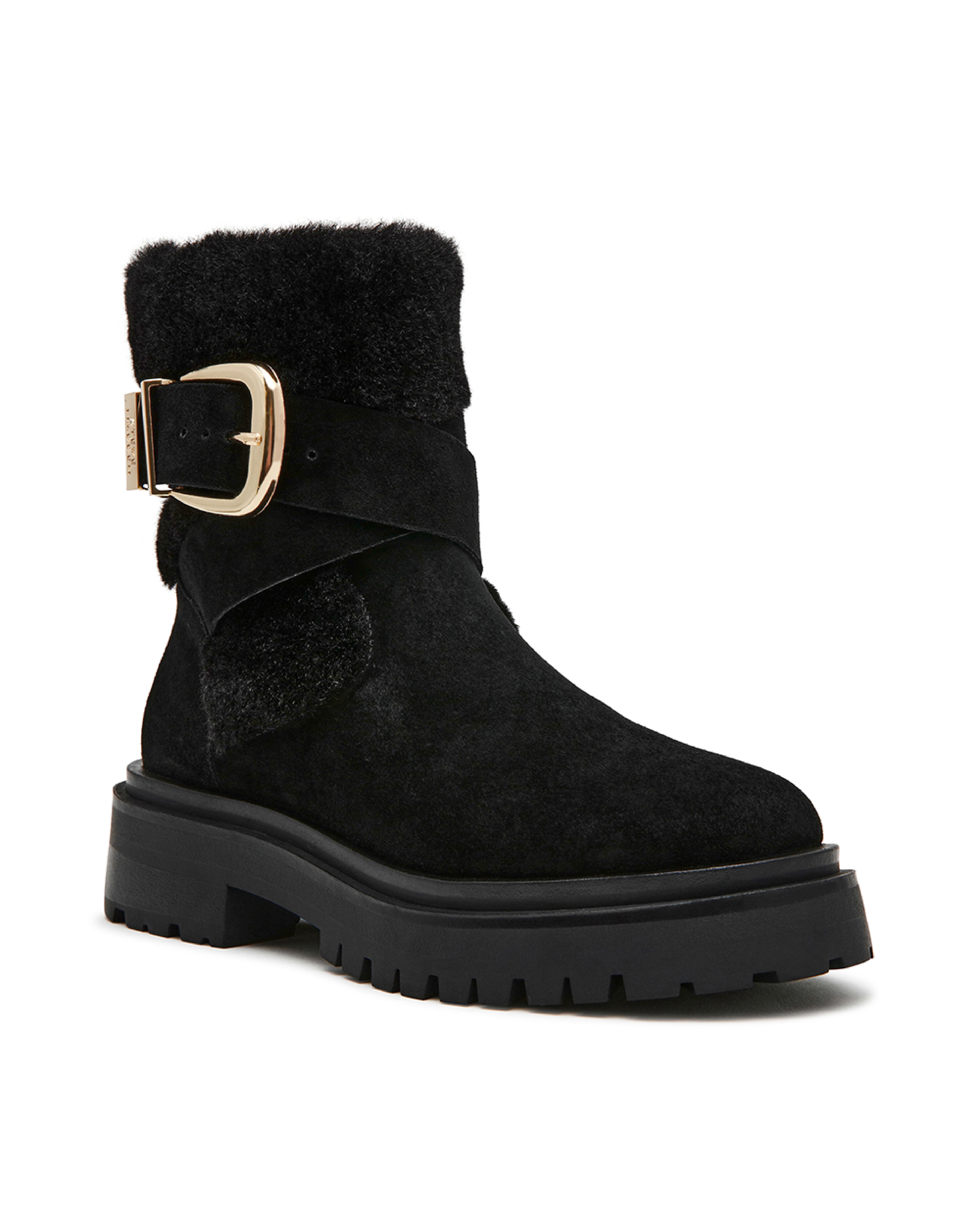 Lodge 可愛毛毛金屬扣飾短靴-黑色