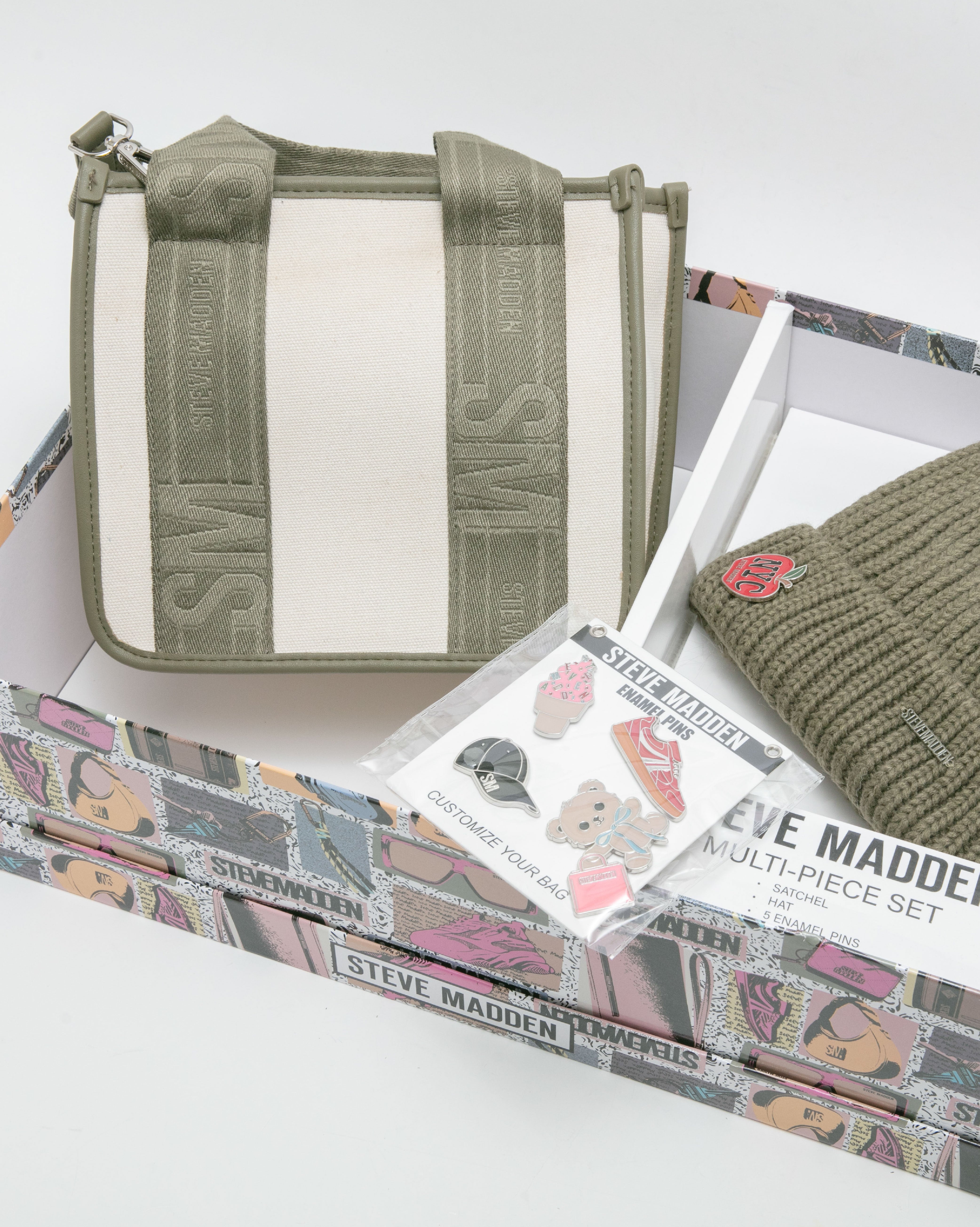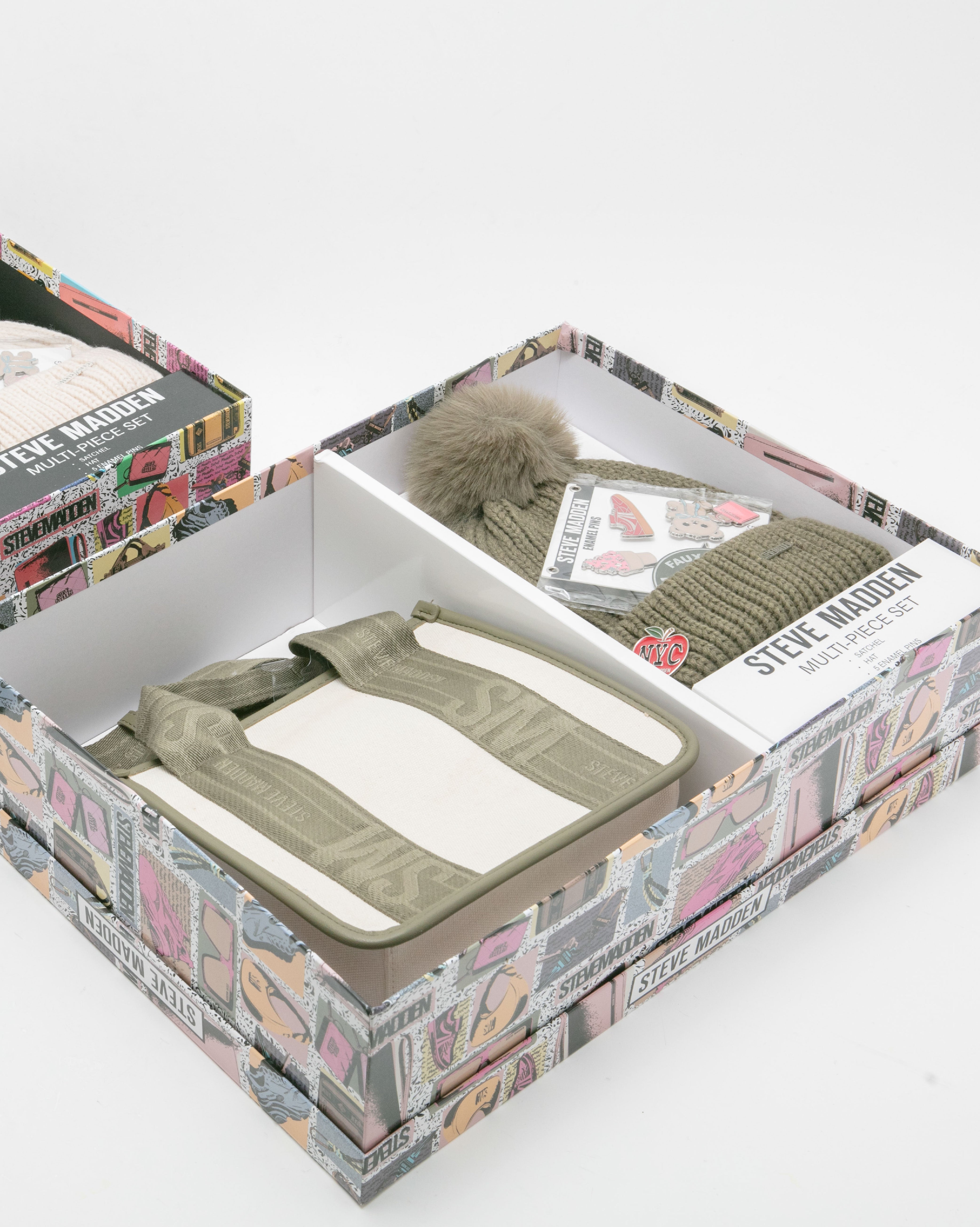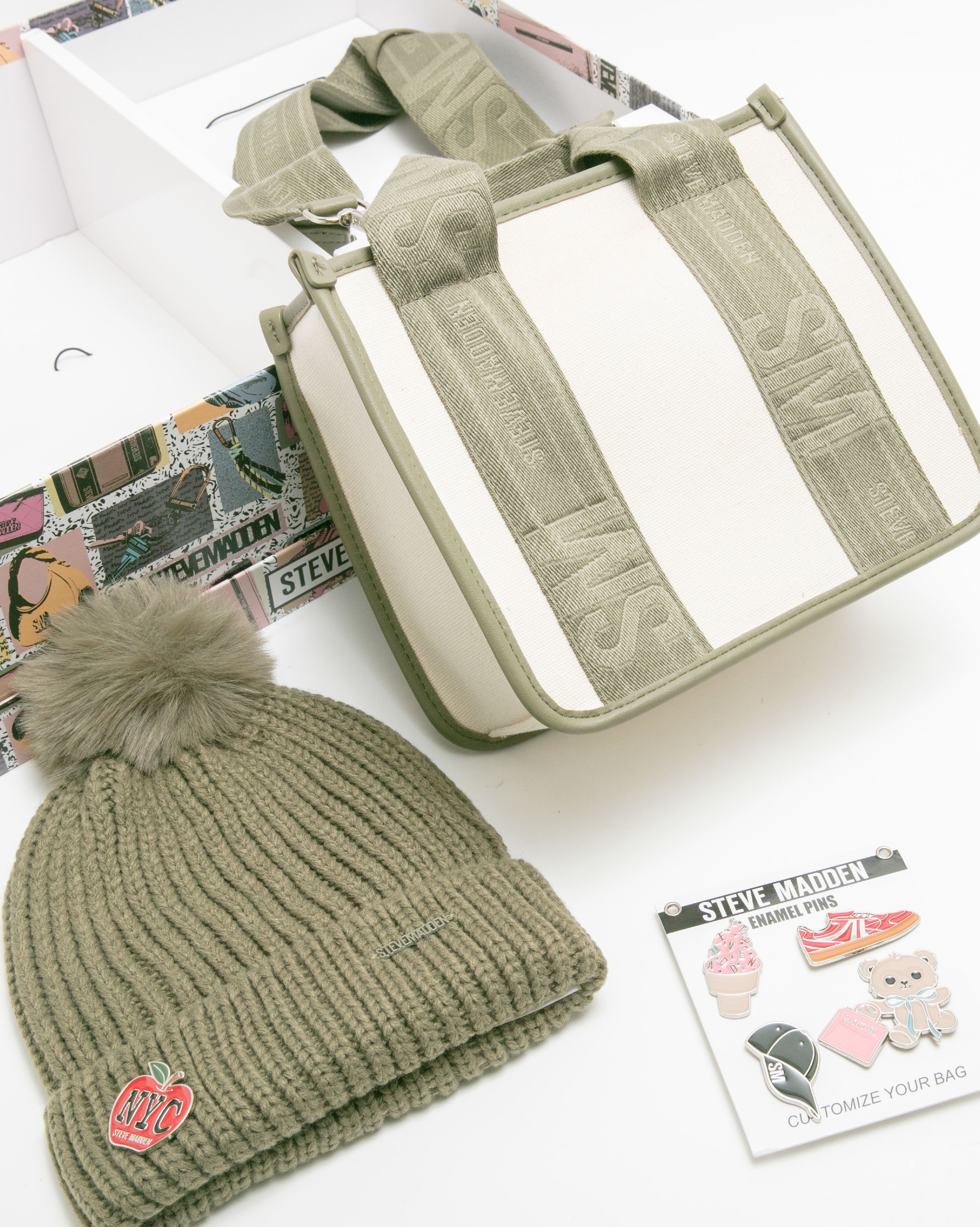 Logo寬帶兩用包/潮流徽章毛帽禮盒-墨綠色