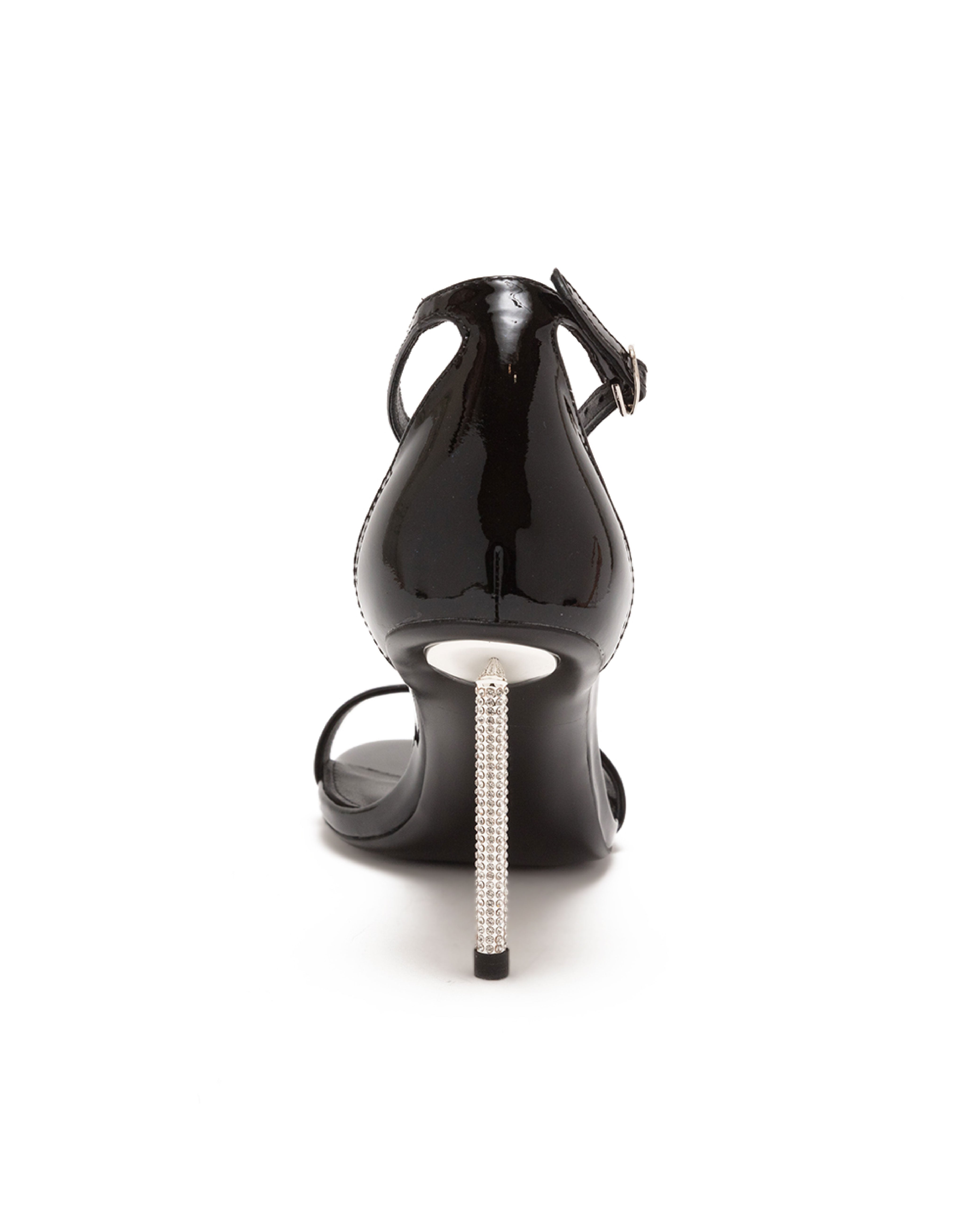 Twhelen 經典一字帶繞頸涼跟鞋-鏡黑
