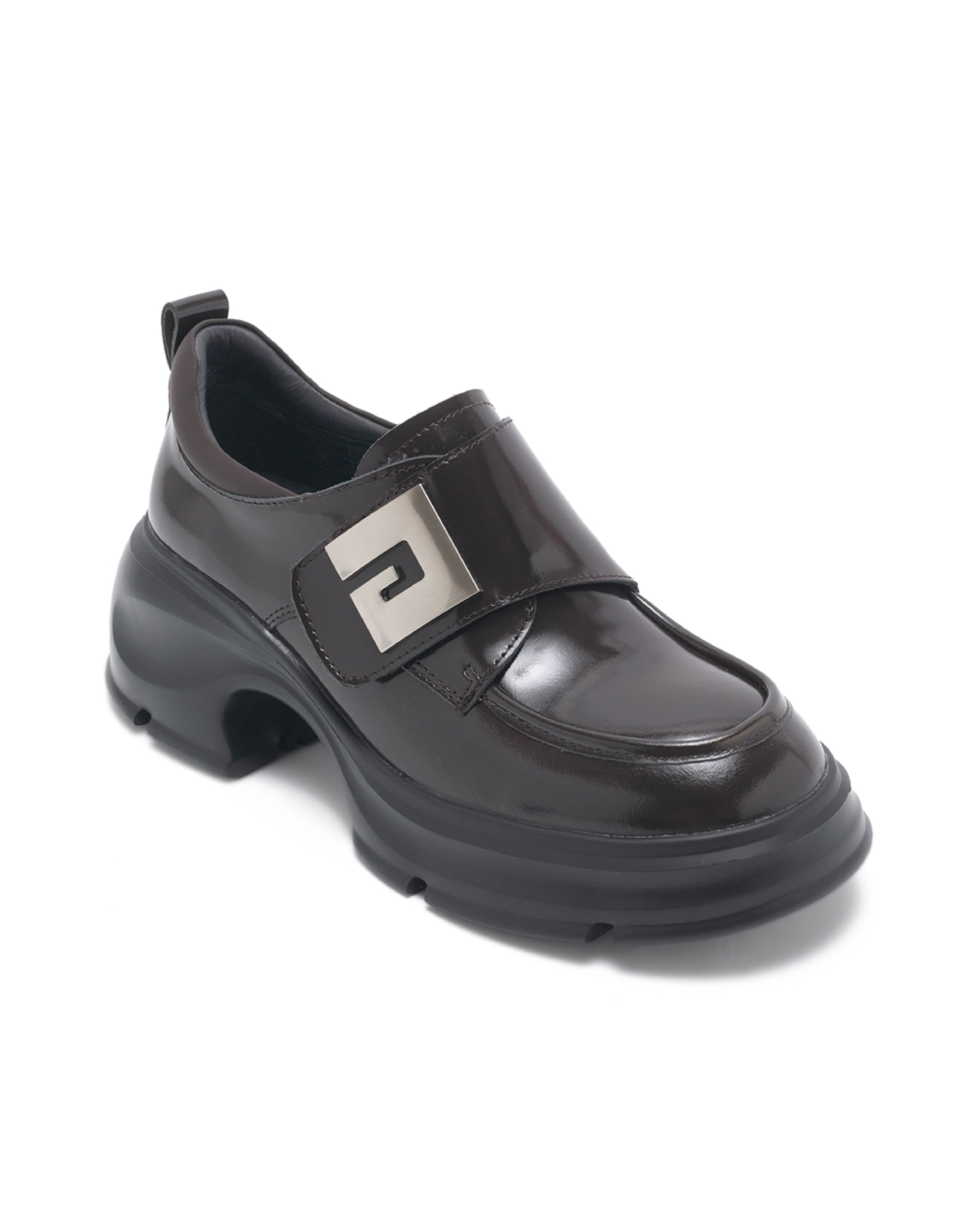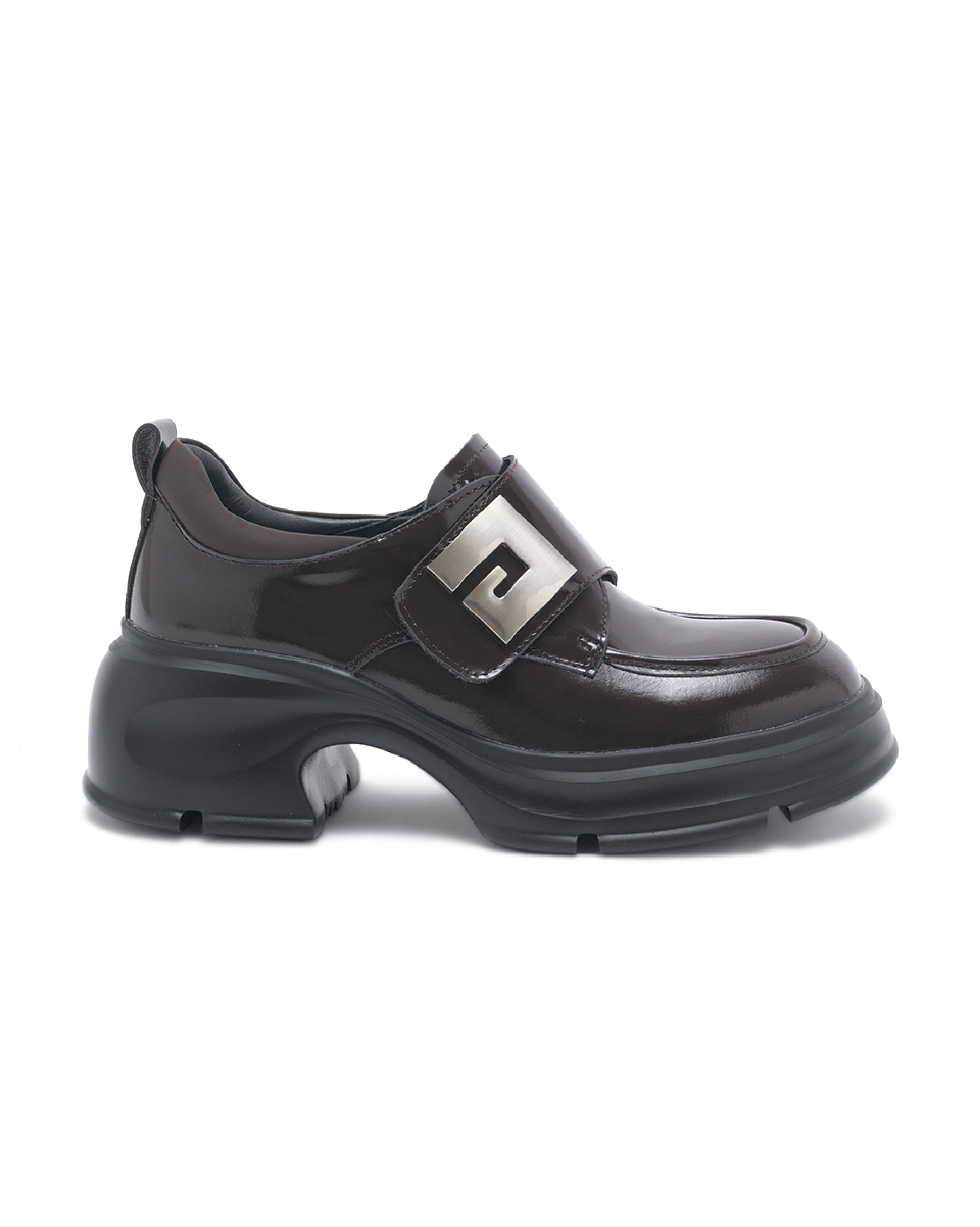 • TWVERNA 厚底方形扣飾休閒樂福鞋-鏡咖啡