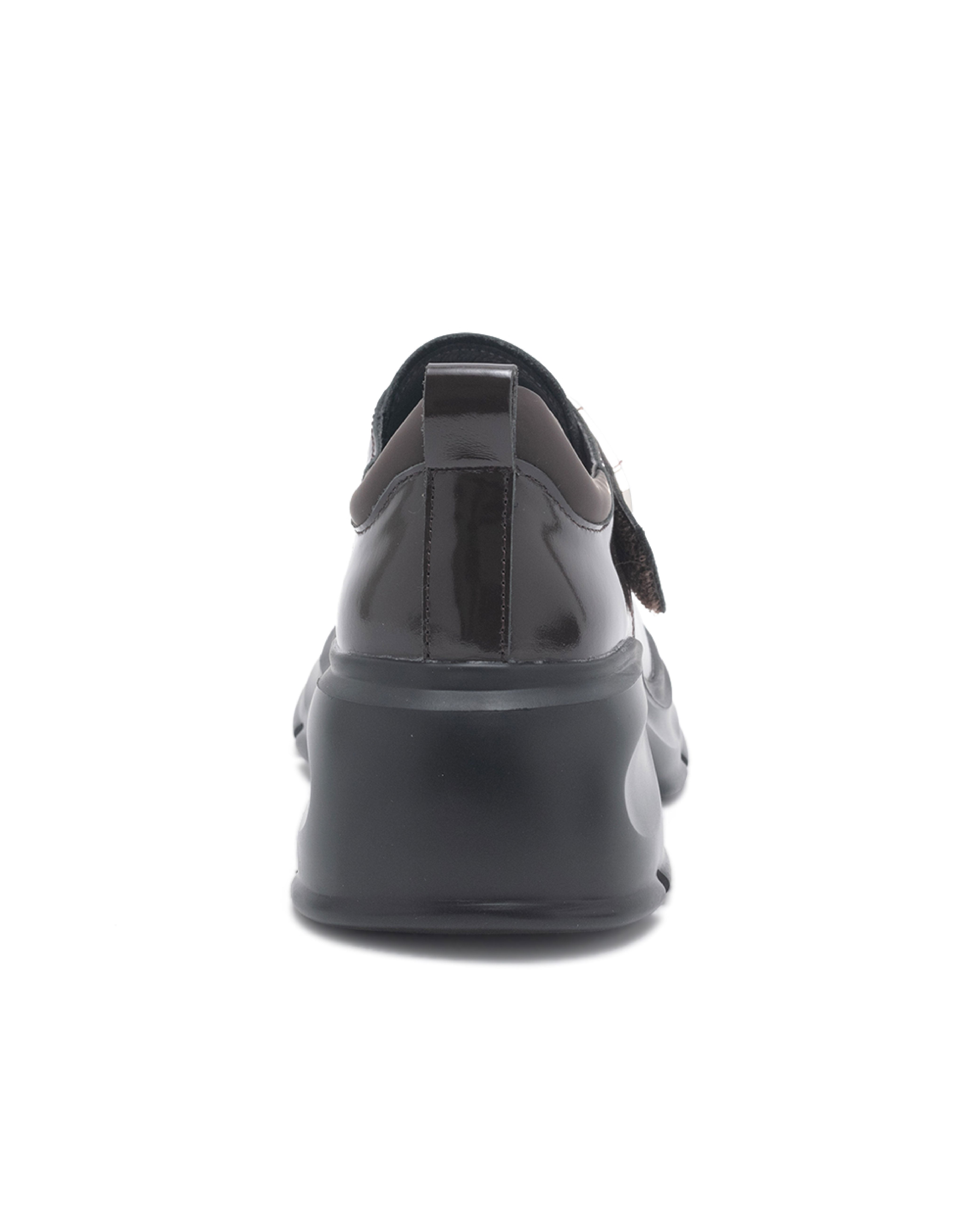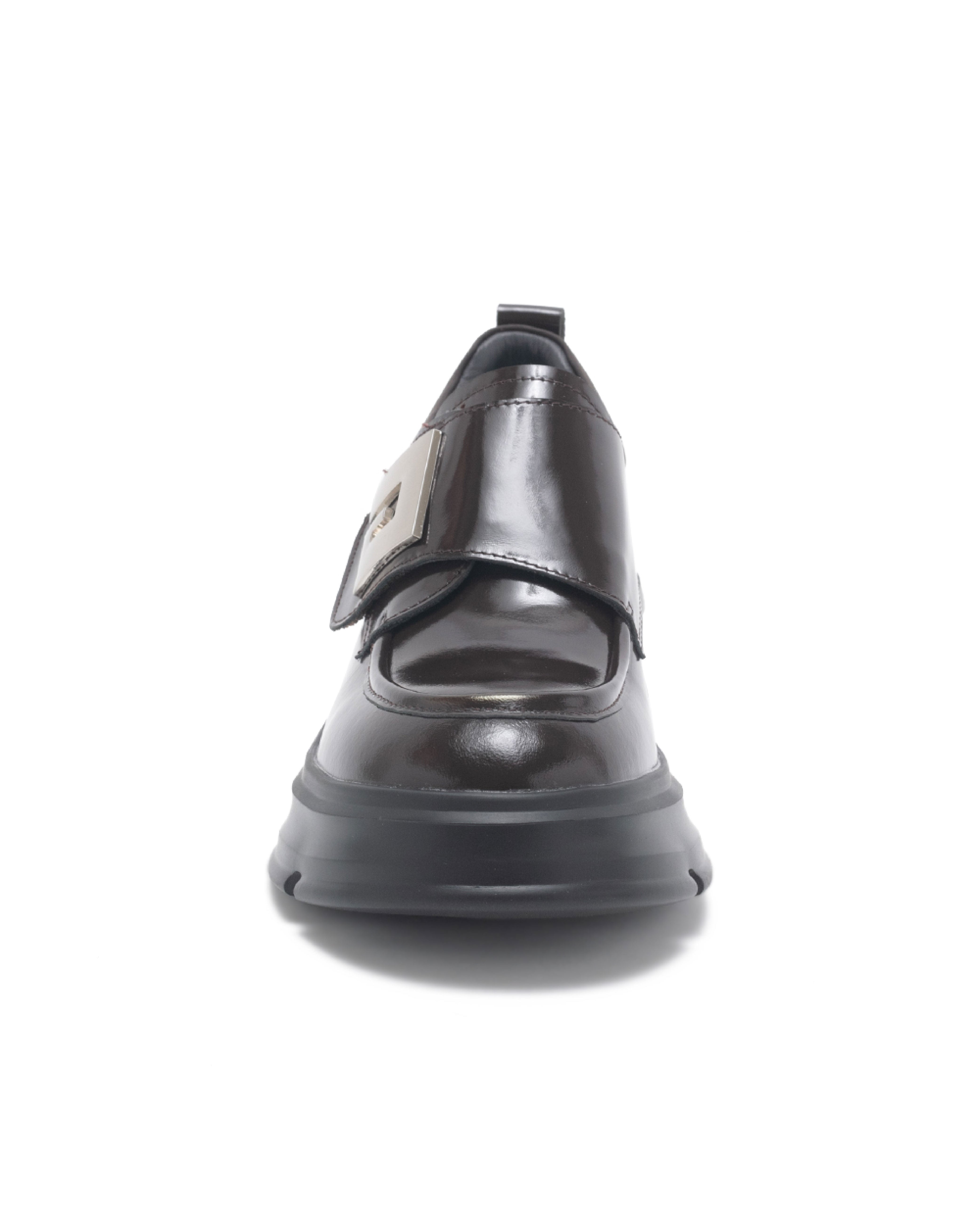 Twverna 厚底方形扣飾休閒樂福鞋-鏡咖啡