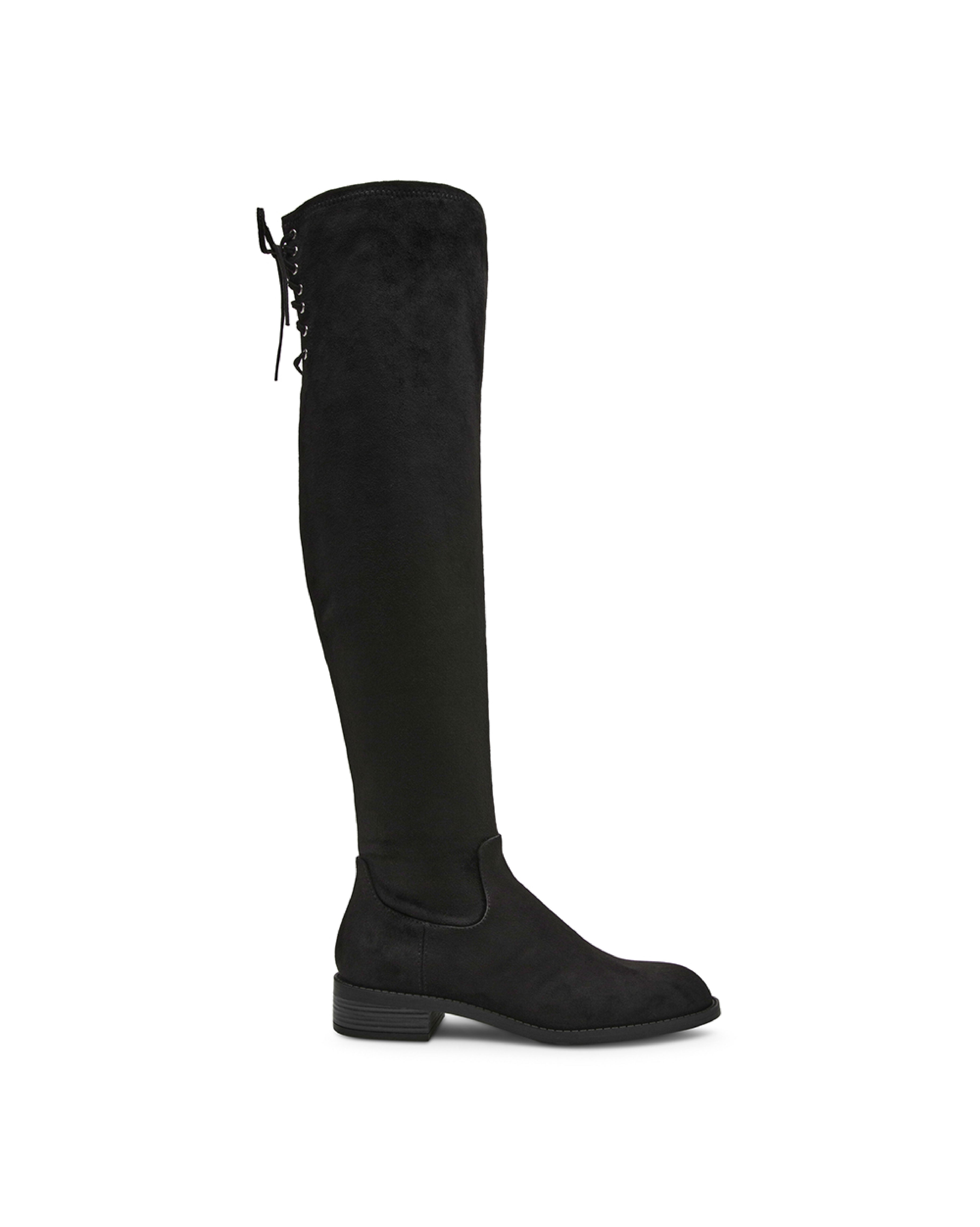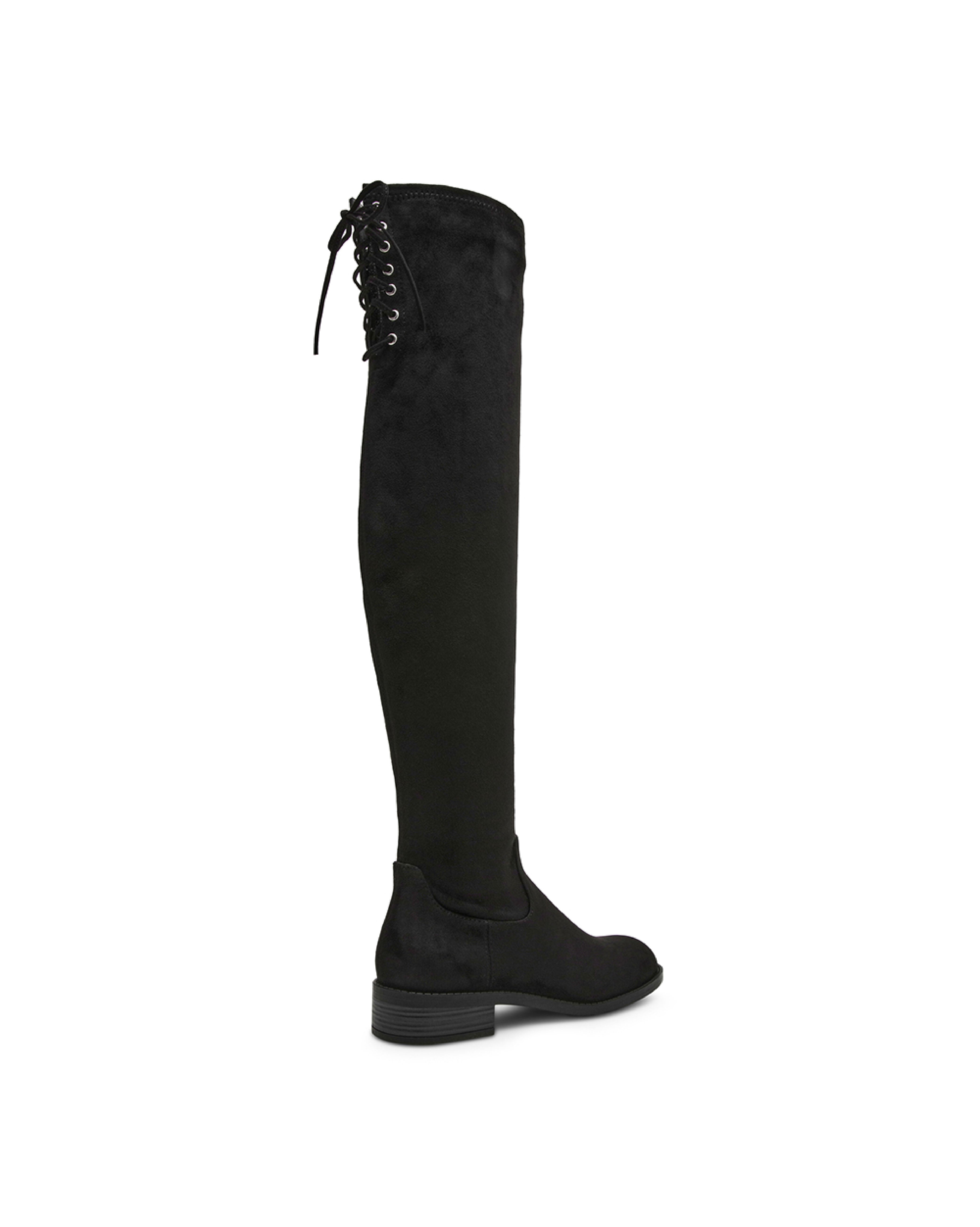 • XRAY 後綁帶絨布過膝長靴-黑色